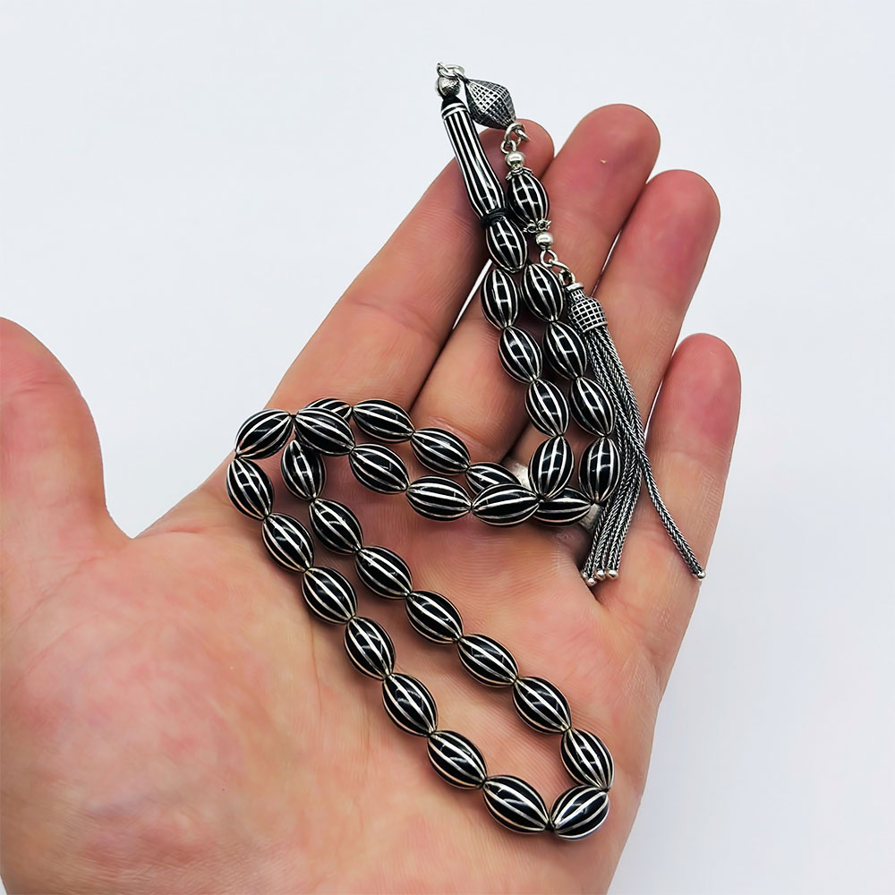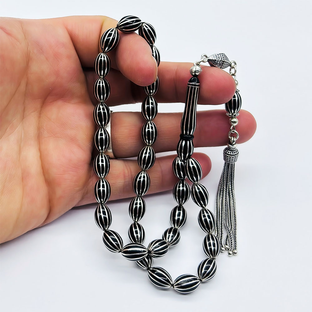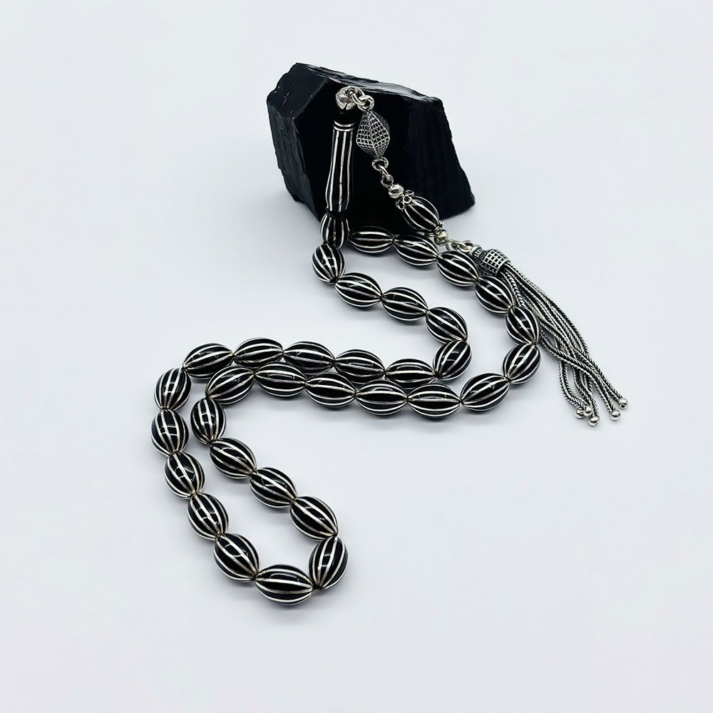 Sistemli Gümüş İşleme Orijinal Oltu Taşı Tesbih