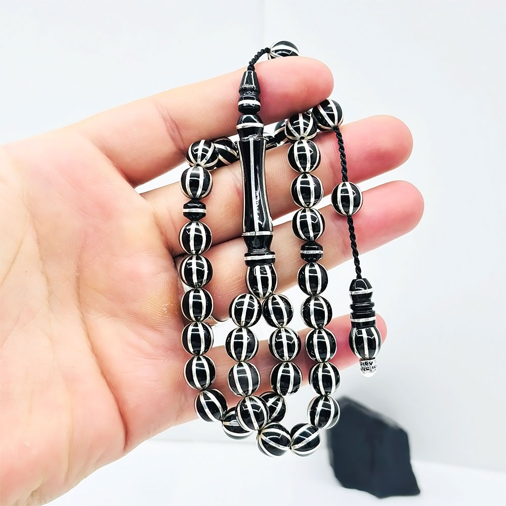 Özel kadife kutusu ve özellikleri belirtilen tesbih |