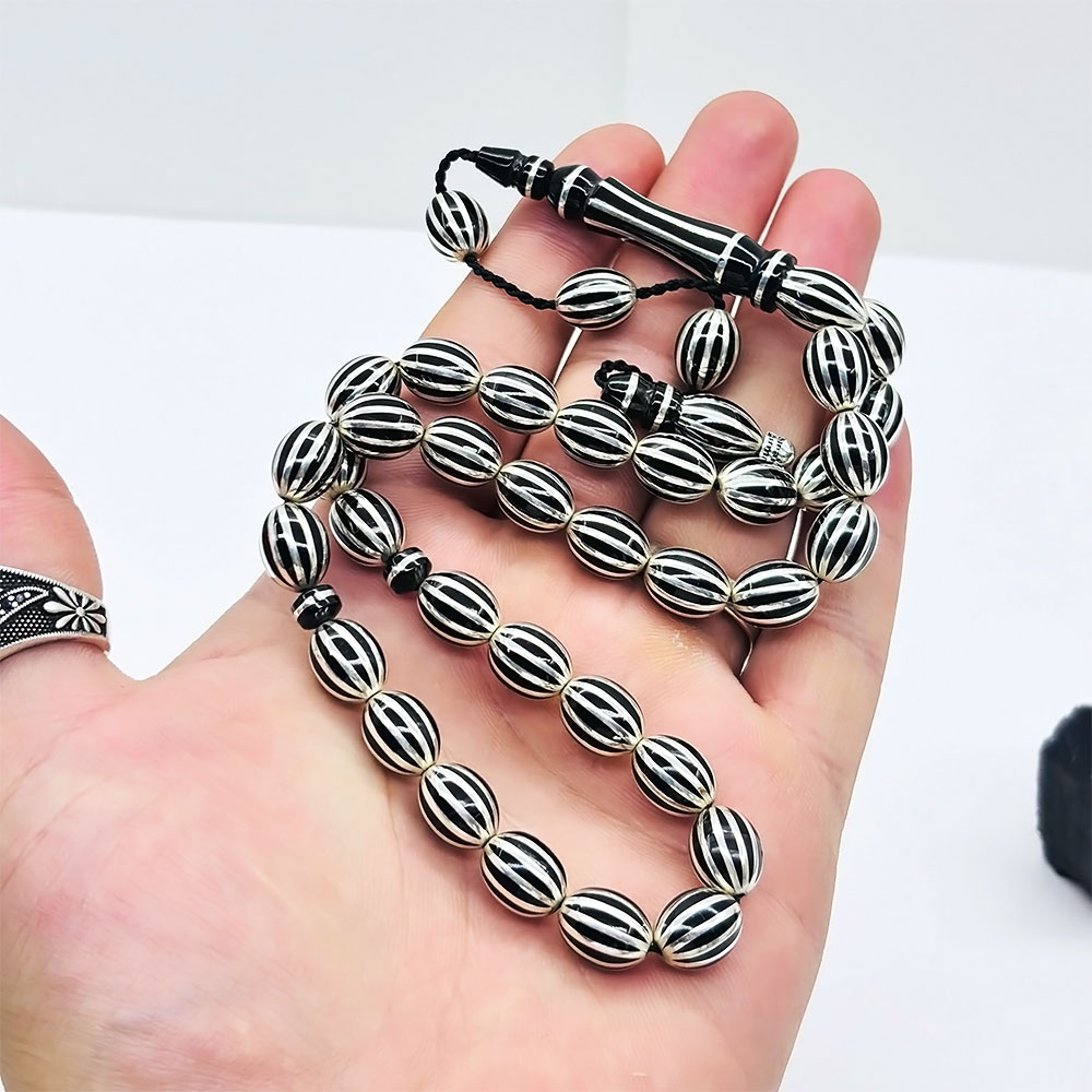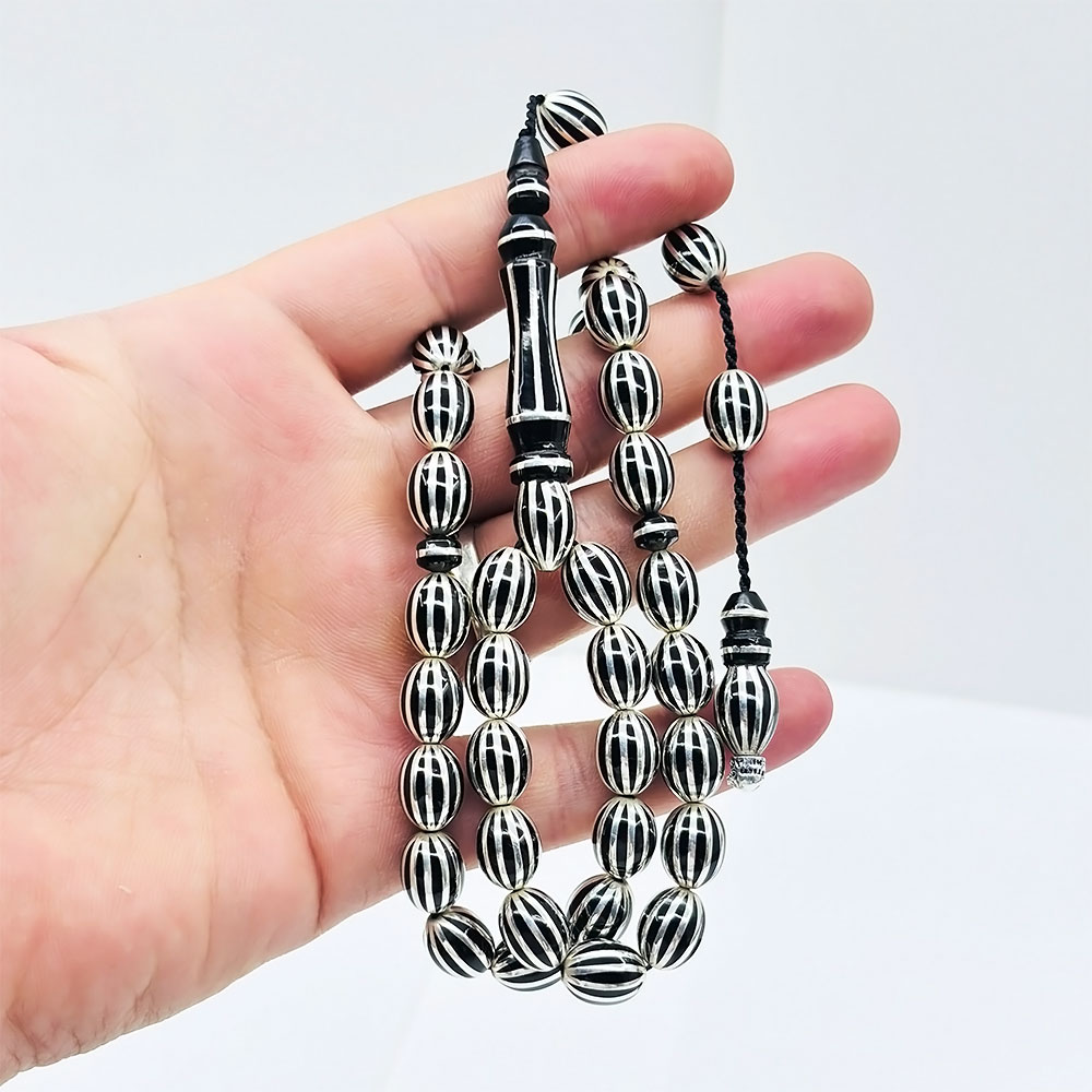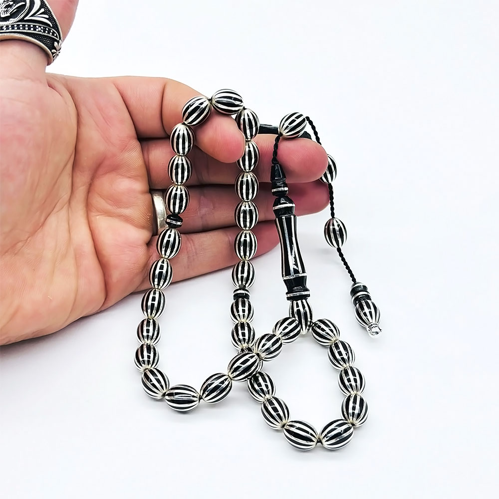 Özel kadife kutusu ve özellikleri belirtilen tesbih |