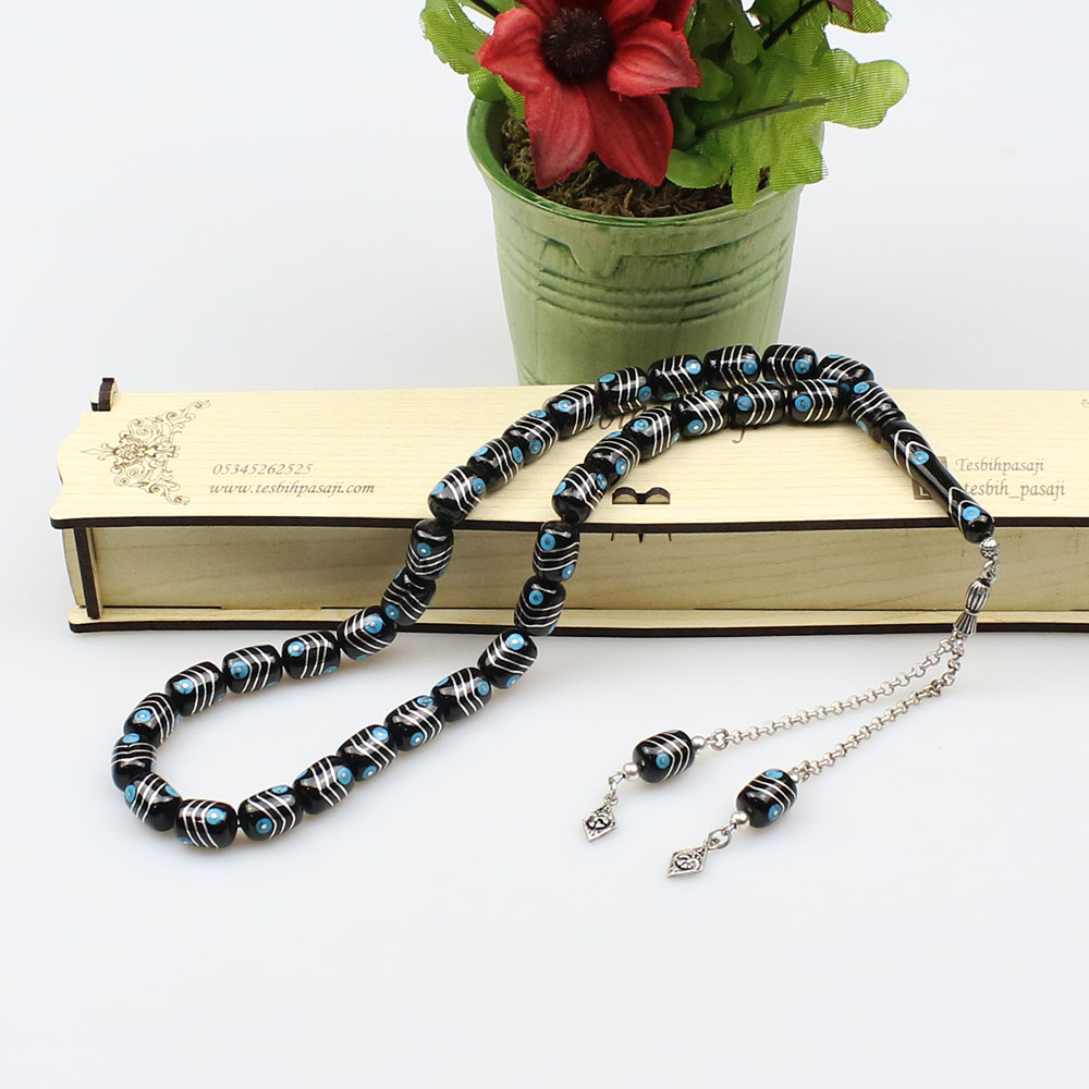 Özel karton kutusu ve özellikleri belirtilen tesbih |