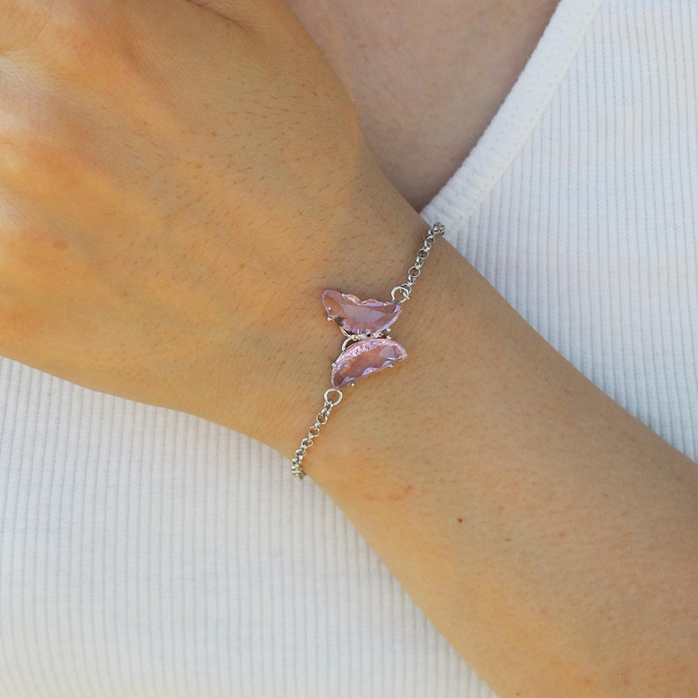 925 Ayar Gümüş Pembe Kelebek Bileklik