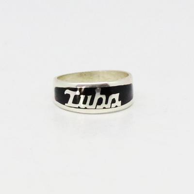 925 Ayar Gümüş Kişiye Özel İsim Orijinal Oltu Taşı Yüzük