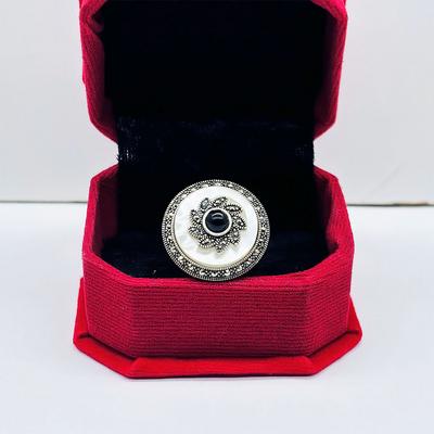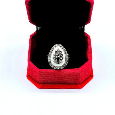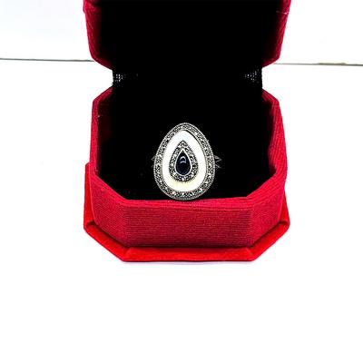Damla Model Sedef Oltu Taşı İşçilikli 925 Ayar Gümüş Yüzük