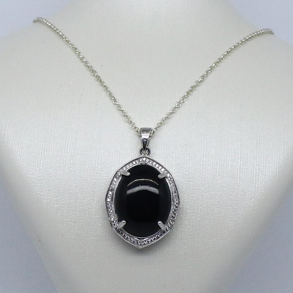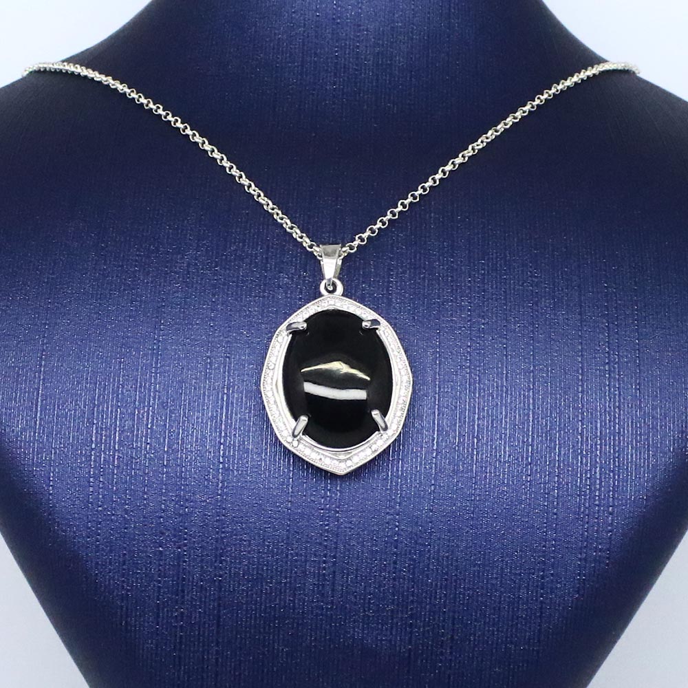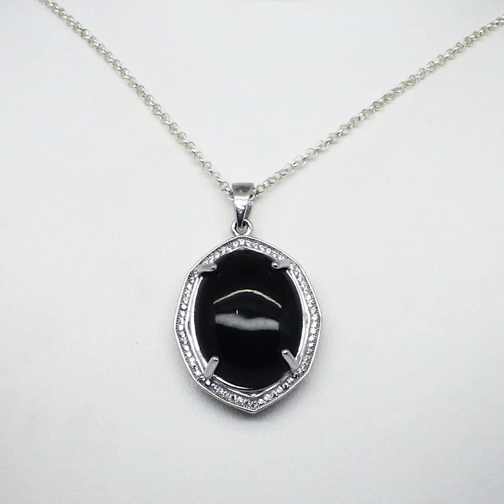 Zirkon ve Oltu Taşı İşçilikli 925 Ayar Gümüş Kolye