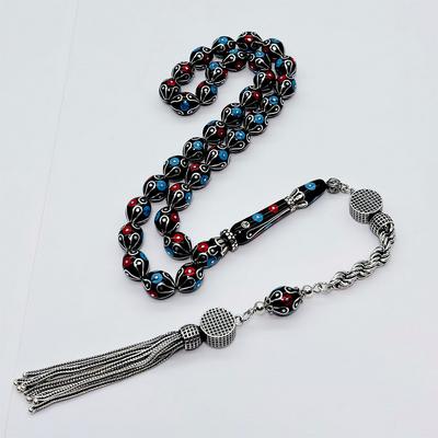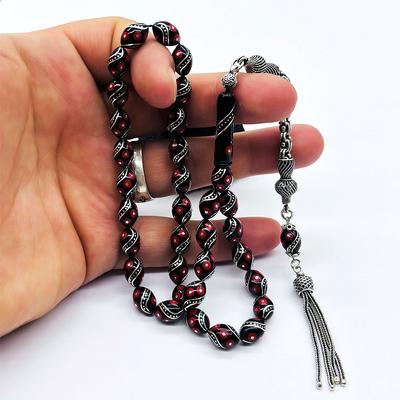Nakkaş İmameli Kırmızı Sürmeli Sıkma Toz Kehribar Tesbih
