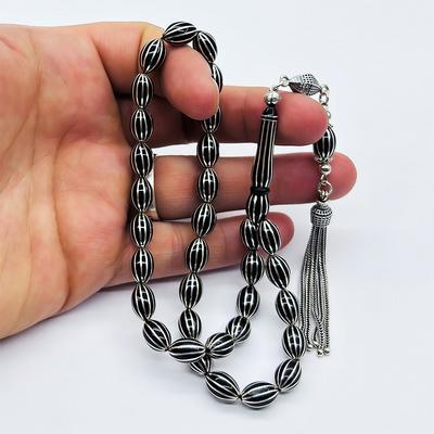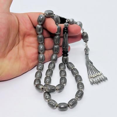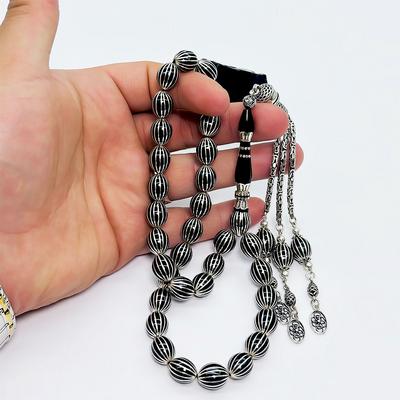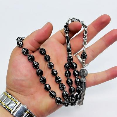Göz Yaşı Damlası Model Gümüş İşlemeli Erzurum Oltu Taşı Tesbih