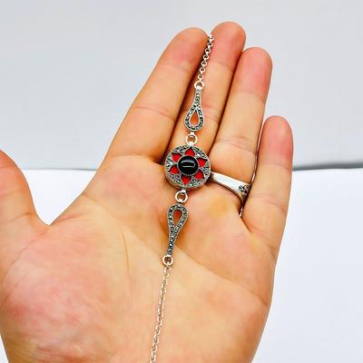 Gül Model Oltu Taşı İşçilikli 925 Ayar Gümüş Kolye