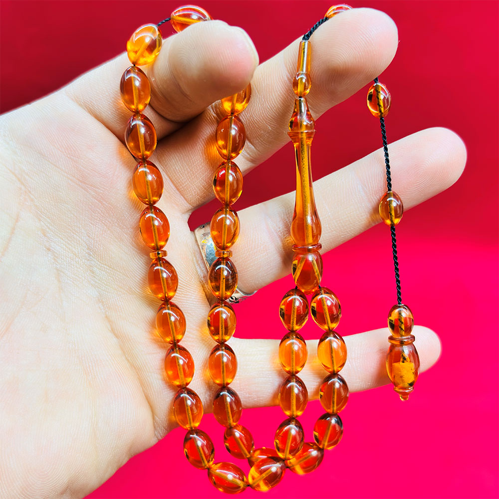 Şeffaf Sarı Renkte Kesme Model Sıkma Ateş Kehribar Tesbih Sıkma & Ateş Kehribar