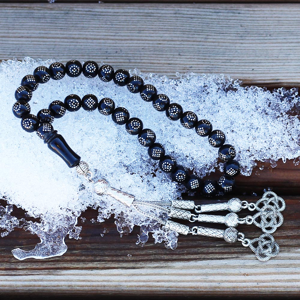 Yoğun Gümüş İşlemeli Gürcistan Menşeli  Tesbih