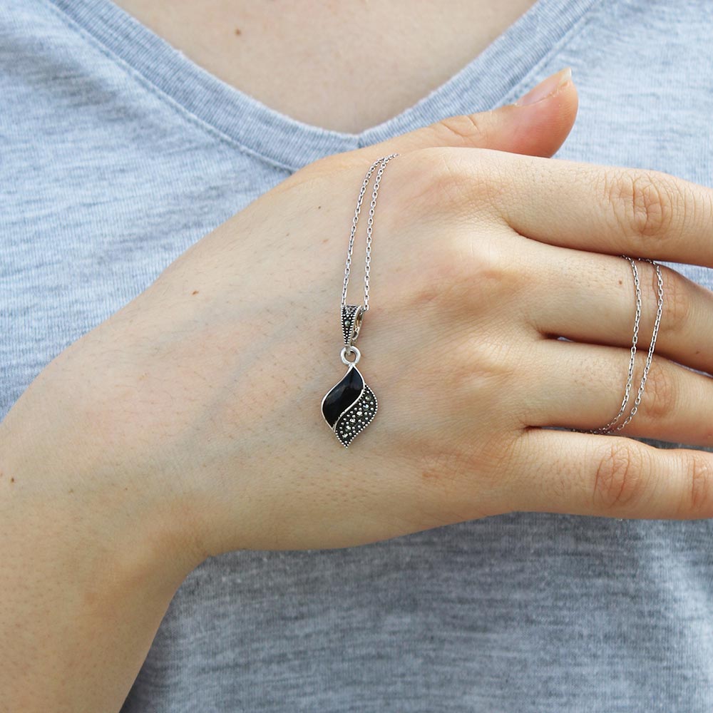 Baklava Model Gümüş Ve Oltu Taşlı Kolye