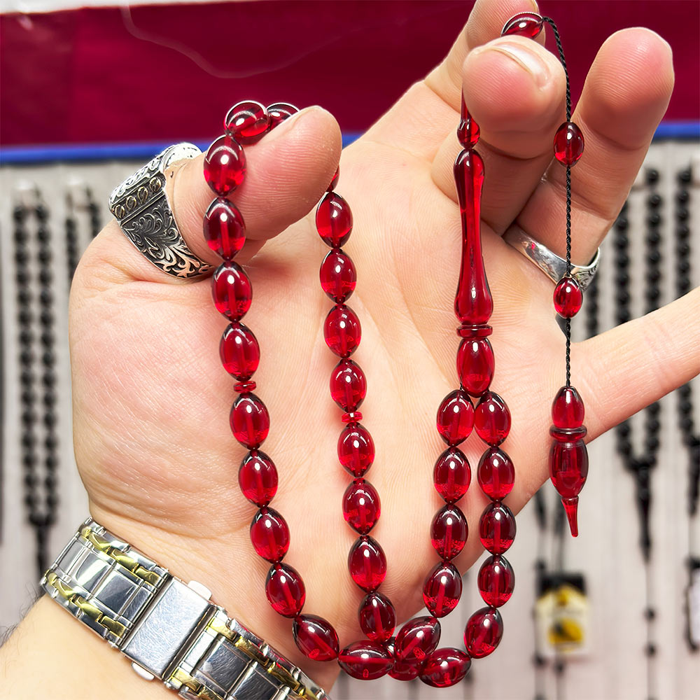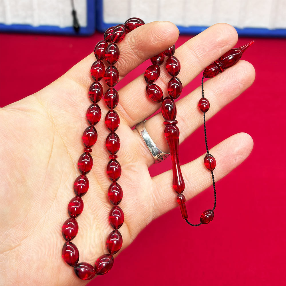 Bayrak Kırmızısı Sıkma Ateş Kehribar Tesbih