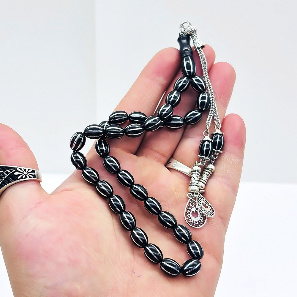 Özel karton kutusu ve özellikleri belirtilen tesbih |