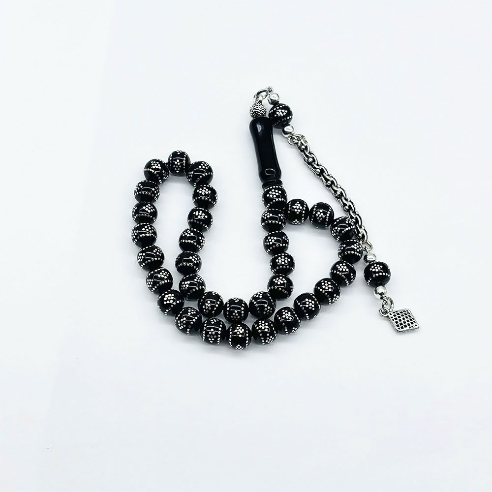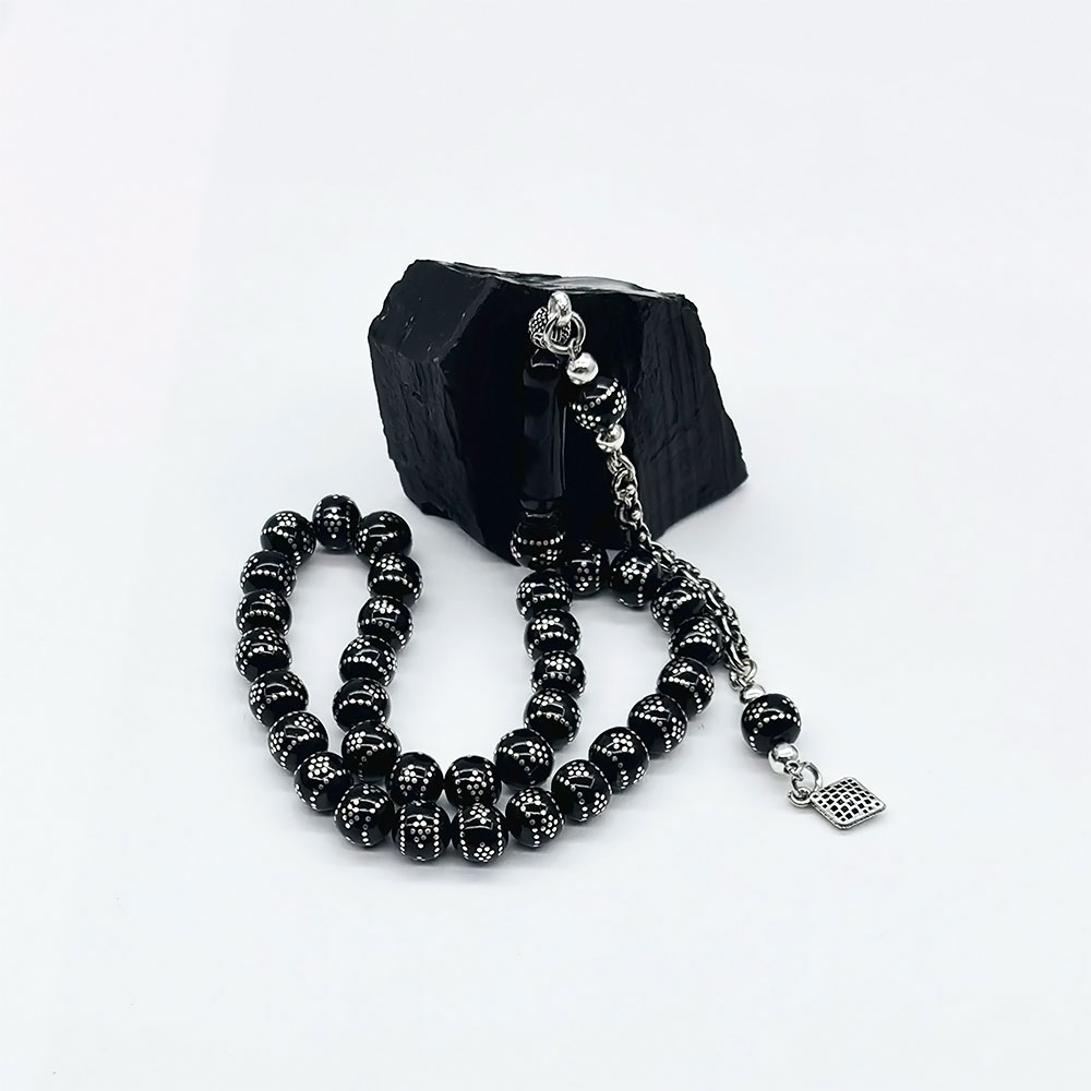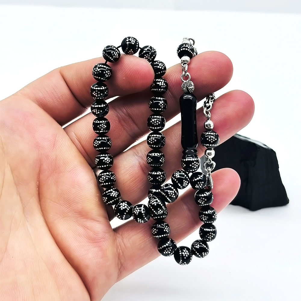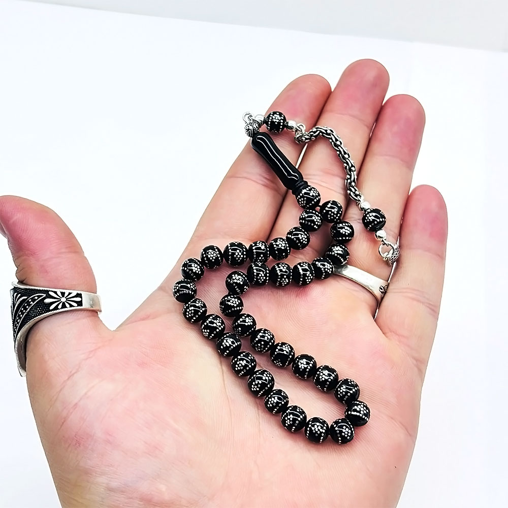 Bilek Boy Gümüş İşlemeli Erzurum Oltu Taşı Tesbih