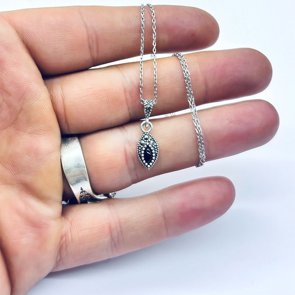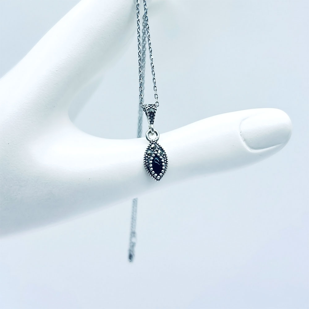 Çift Mekik Model Margazit ve Oltu Taşı İşçilikli 925 Ayar Gümüş Kolye