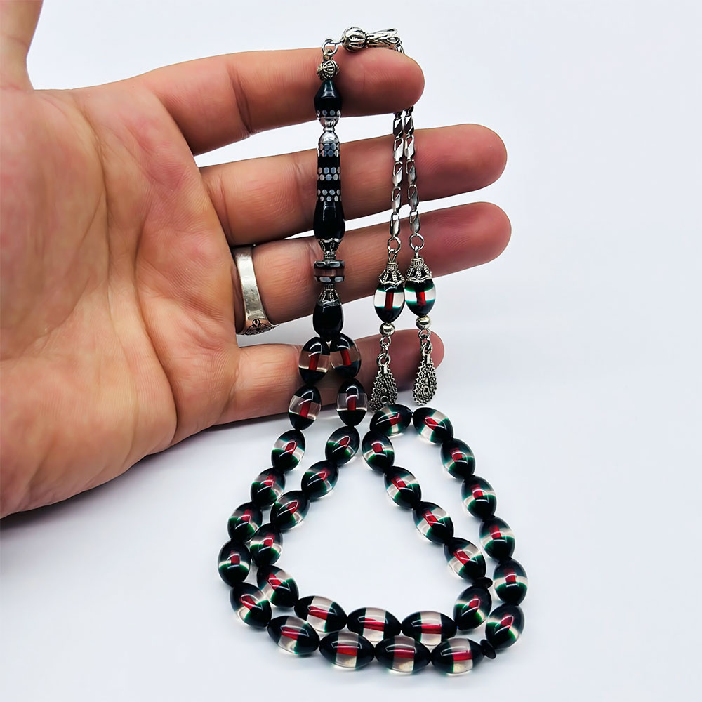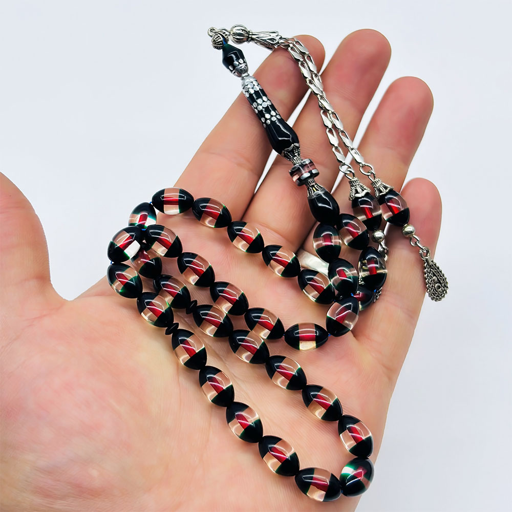 Çift Renk Sürmeli Toz Sıkma Kehribar Tesbih