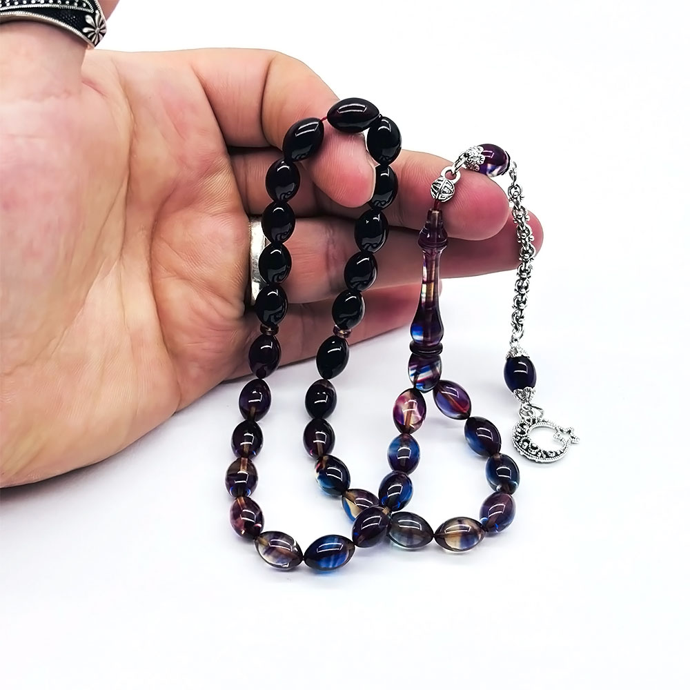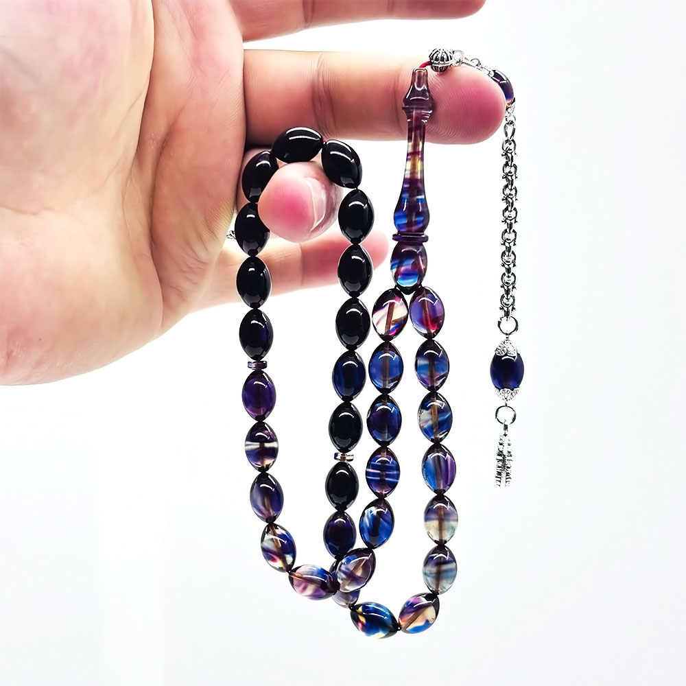 Beyzi Model Parlement Mavisi Ateş Kehribar Tesbih (7 x 11 mm)