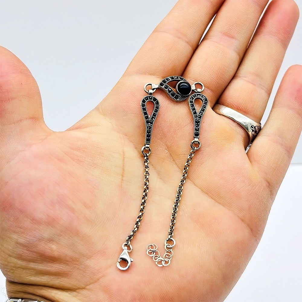 Damla Model Oltu Taşı İşçilikli 925 Ayar Gümüş Bileklik