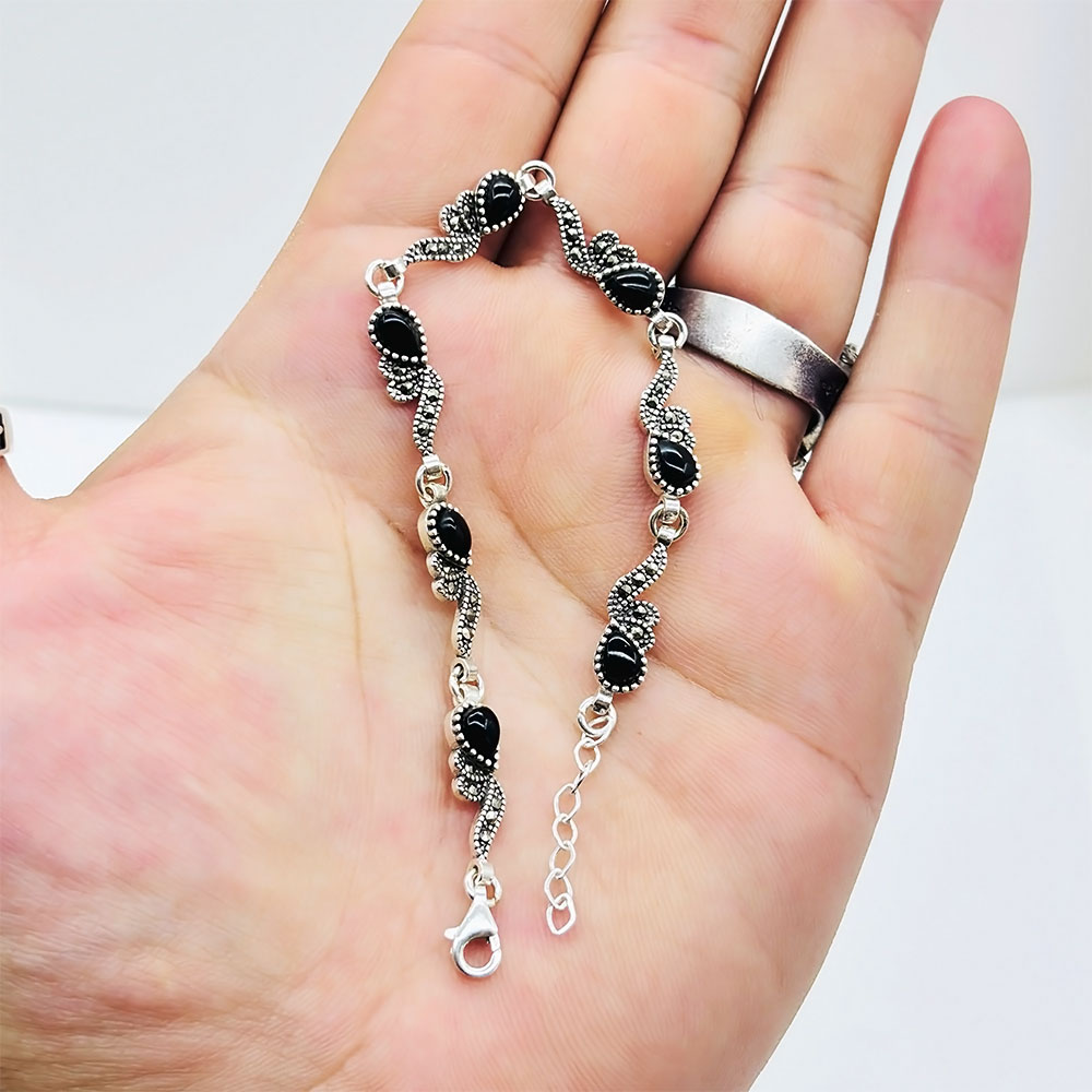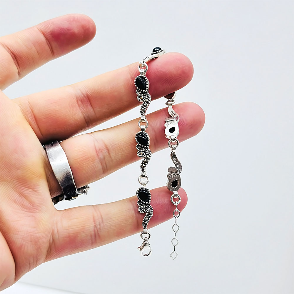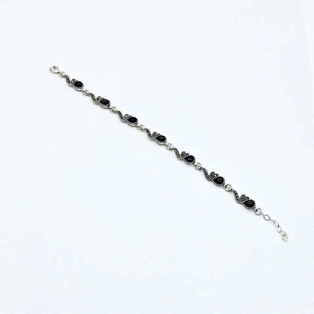 Damla Model Oltu Taşı İşçilikli 925 Ayar Gümüş Bileklik
