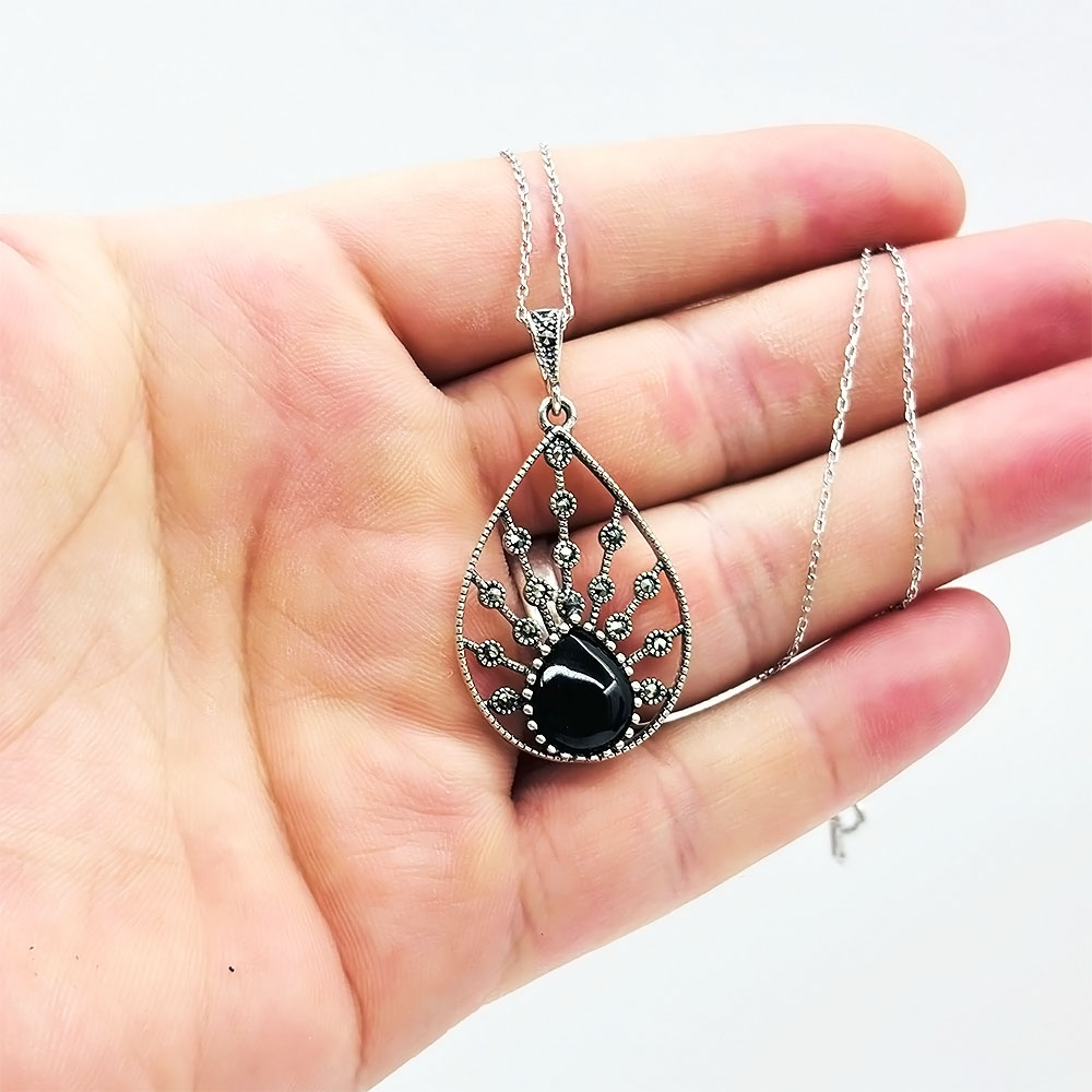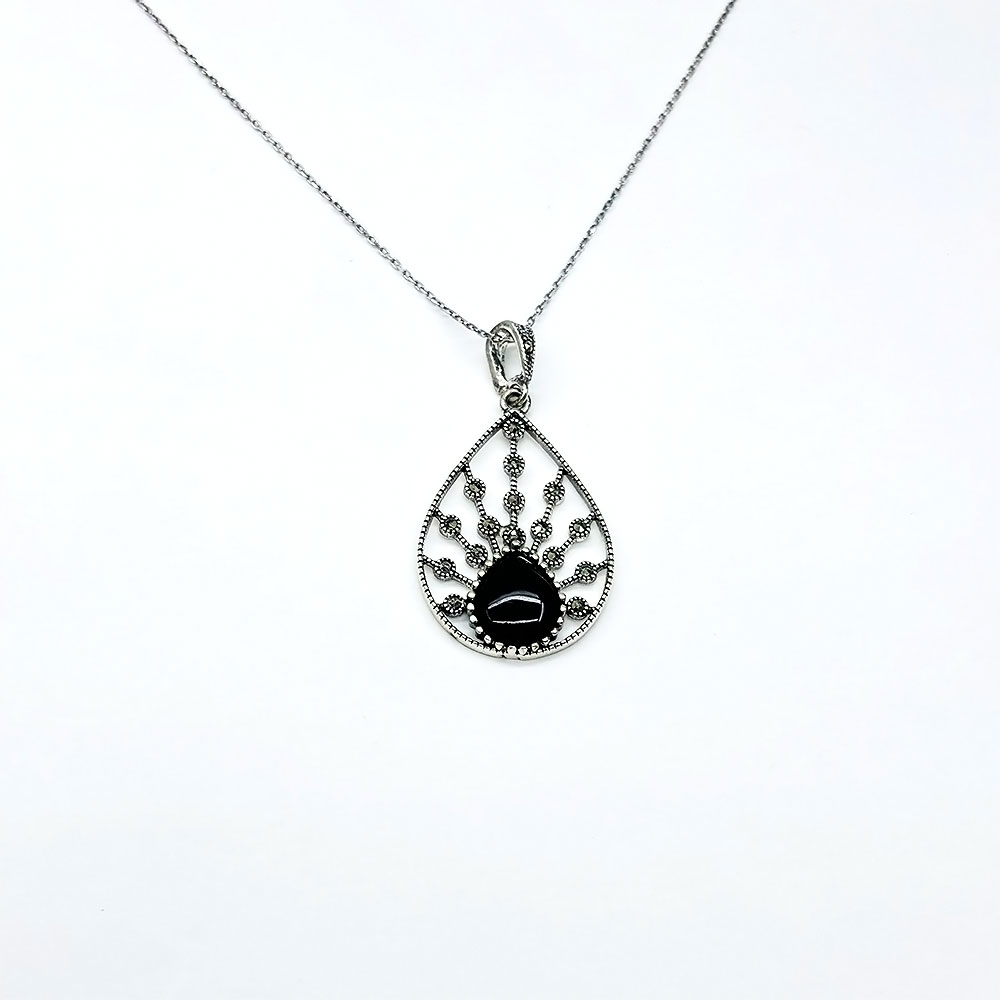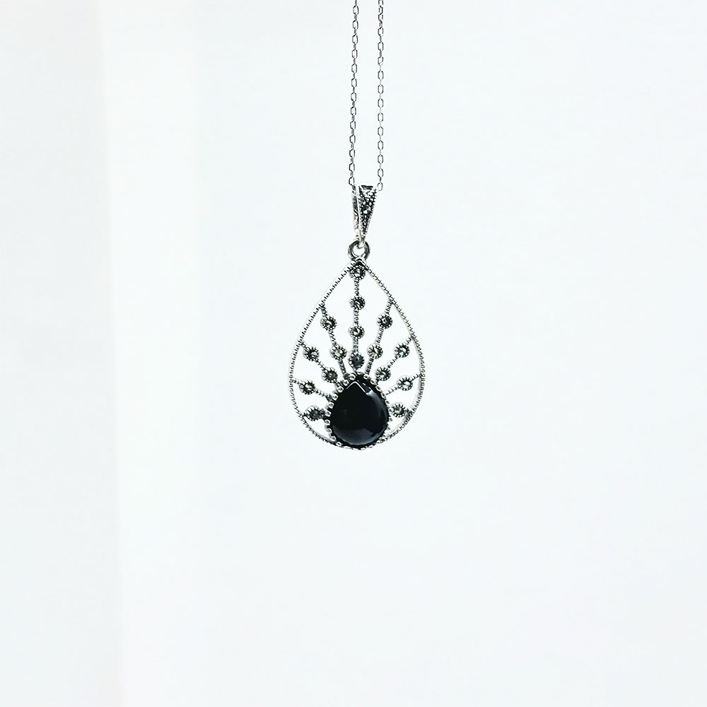 Damla Model Oltu Taşı İşçilikli 925 Ayar Gümüş Kolye