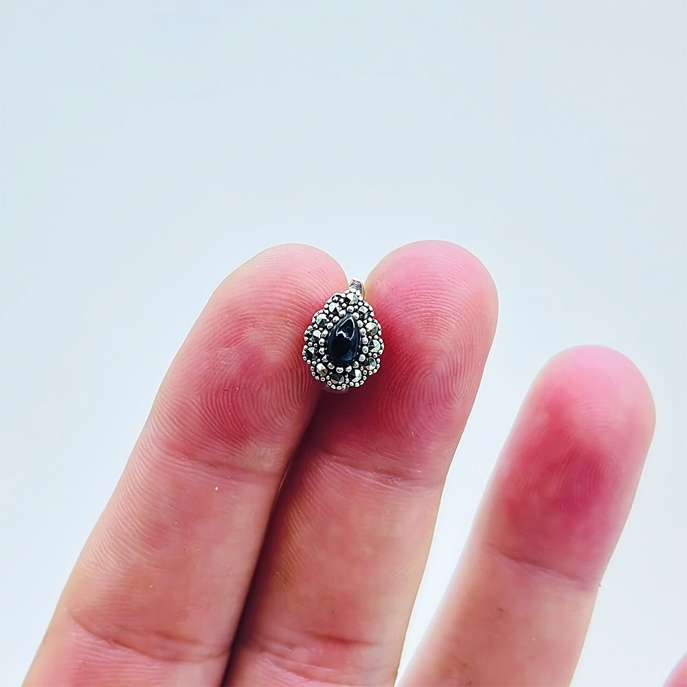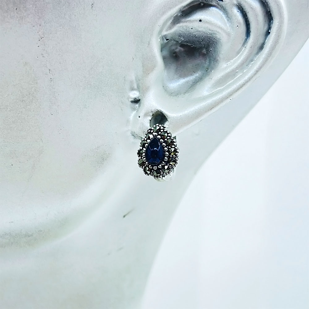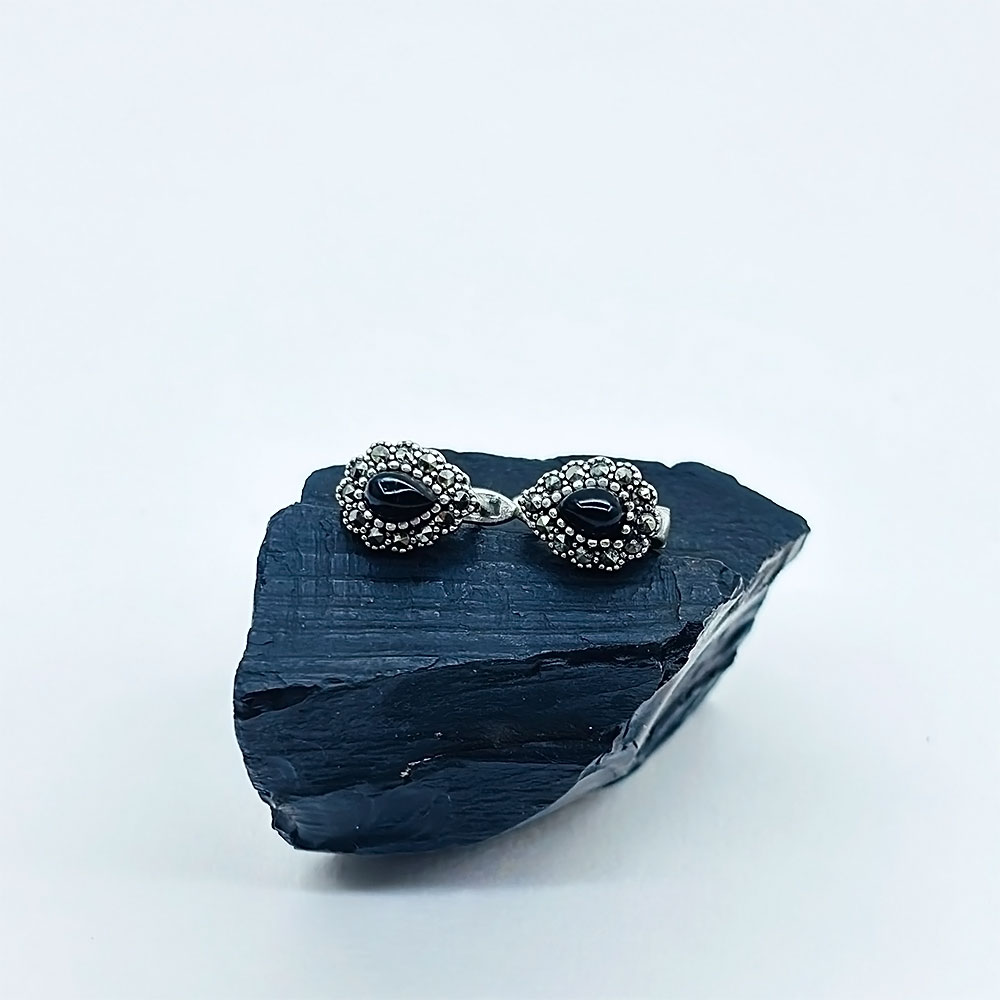 Damla Model Oltu Taşı İşçilikli 925 Ayar Gümüş Küpe