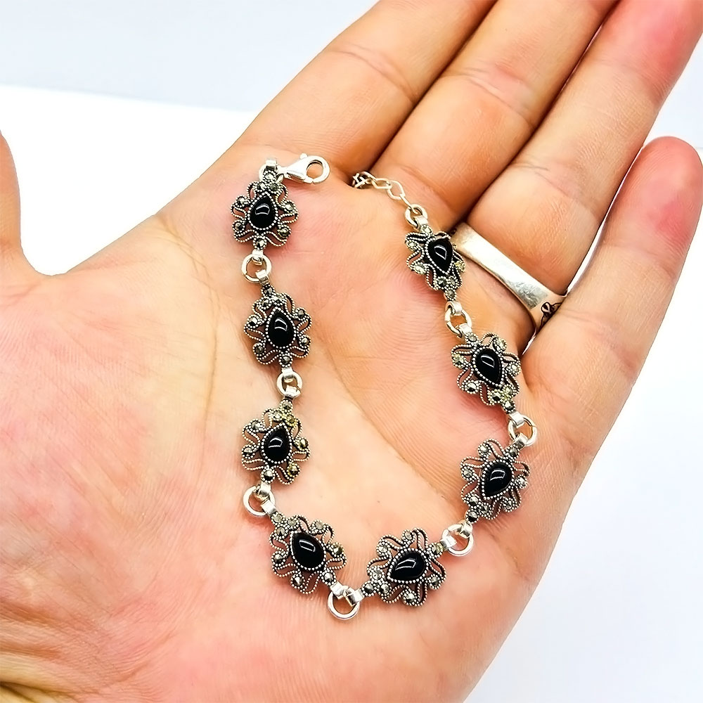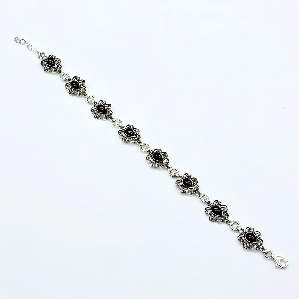 Damla Model Zirkon Oltu Taşı İşçilikli 925 Ayar Gümüş Bileklik