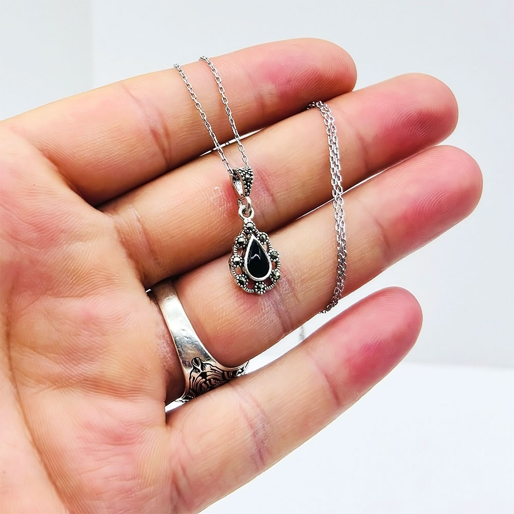Özel karton kutusu ve özellikleri belirtilen kolye |