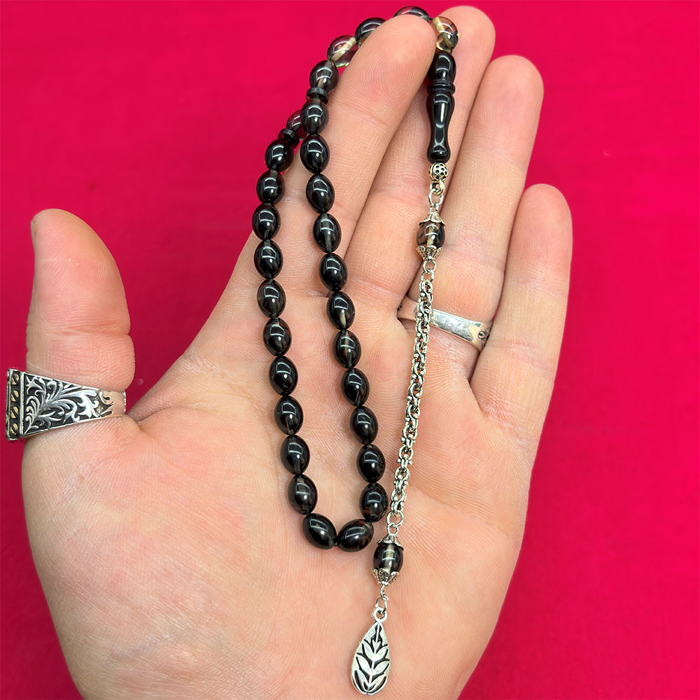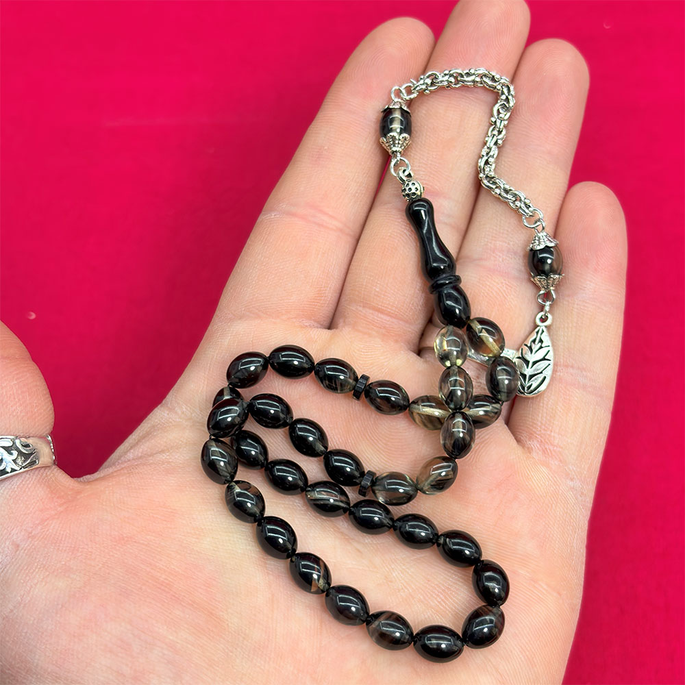Duman Rengi Sıkma Ateş Kehribar Tesbih