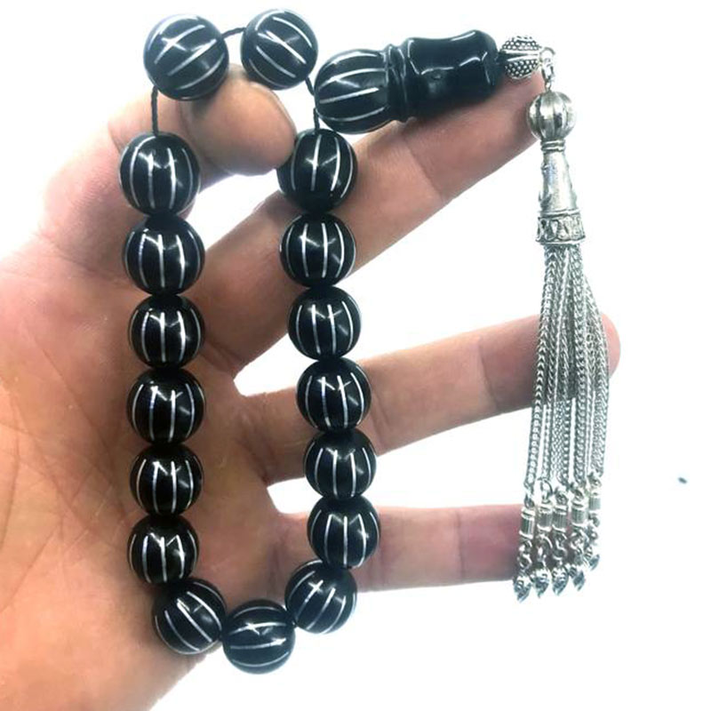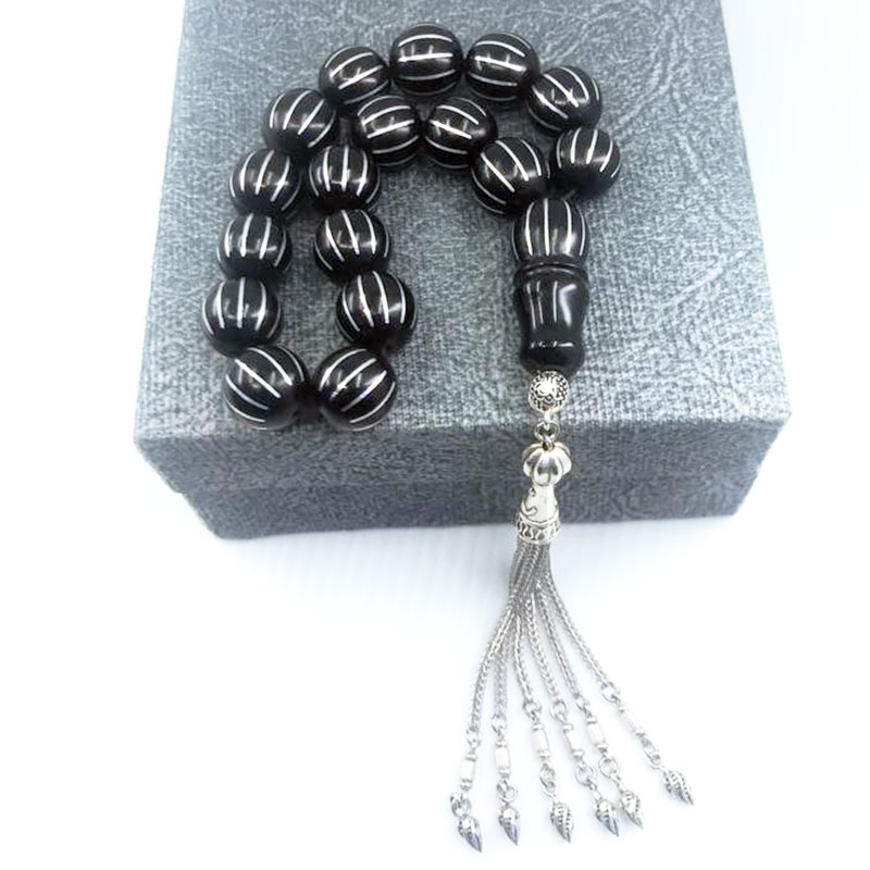 Karton kutusu ve özellikleri belirtilen tesbih |