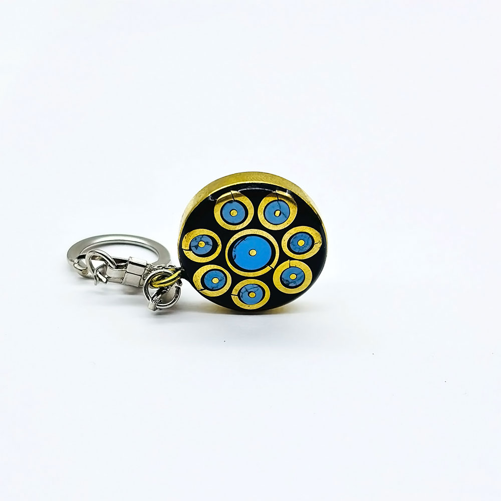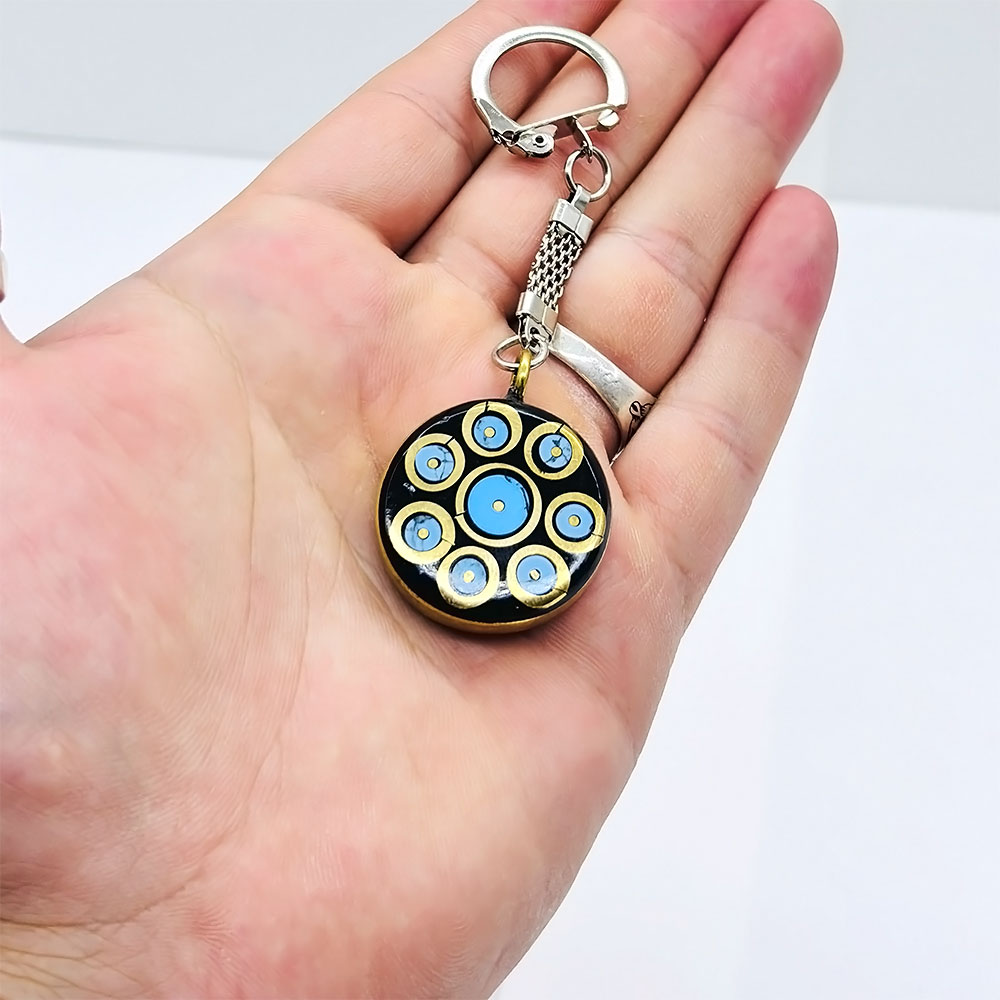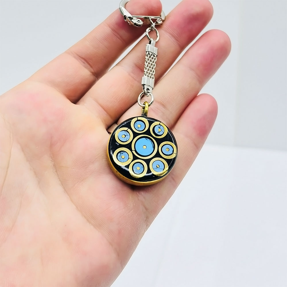 Firuze ve Pirinç İşlemeli Sertifikalı Oltu Taşı Anahtarlık