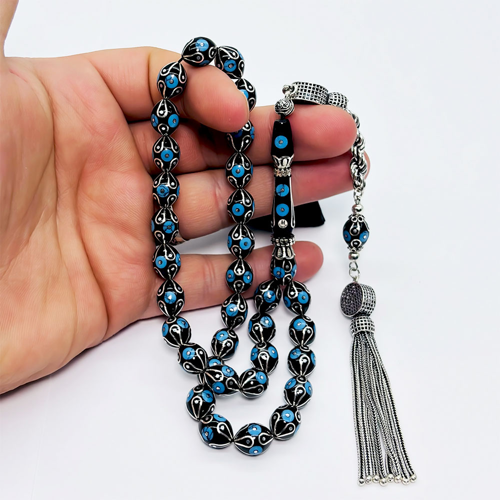 Özel karton kutusu ve özellikleri belirtilen tesbih |