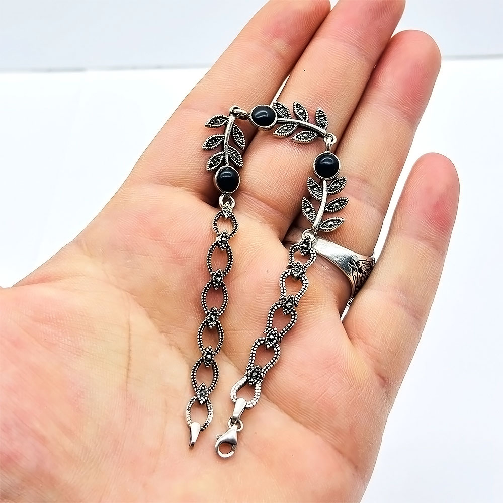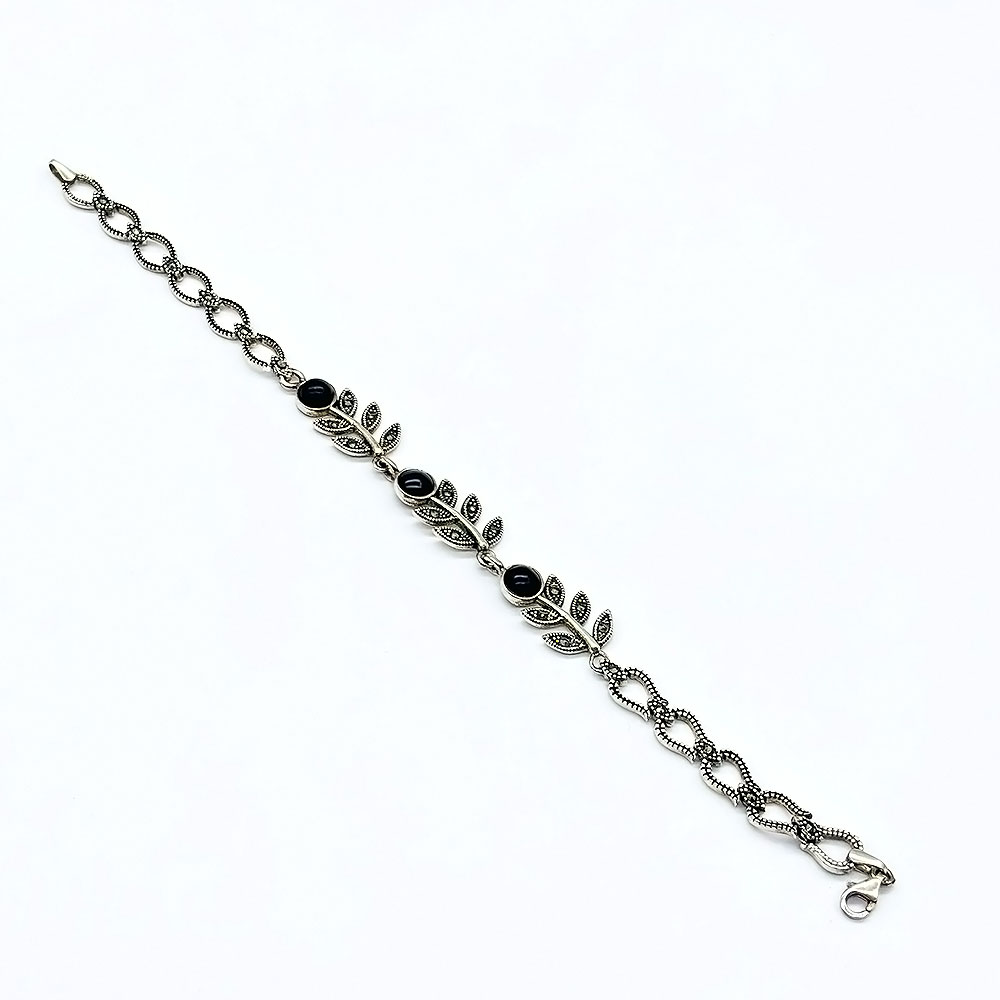 Gül Model Oltu Taşı İşçilikli 925 Ayar Gümüş Bileklik