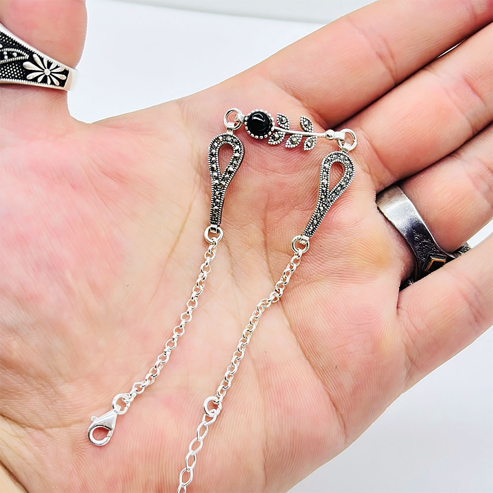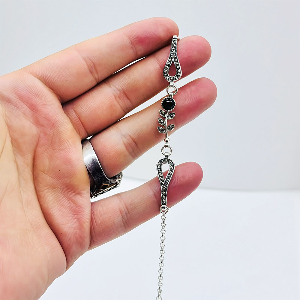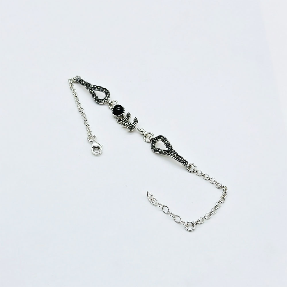 Gül Model Oltu Taşı İşçilikli 925 Ayar Gümüş Bileklik