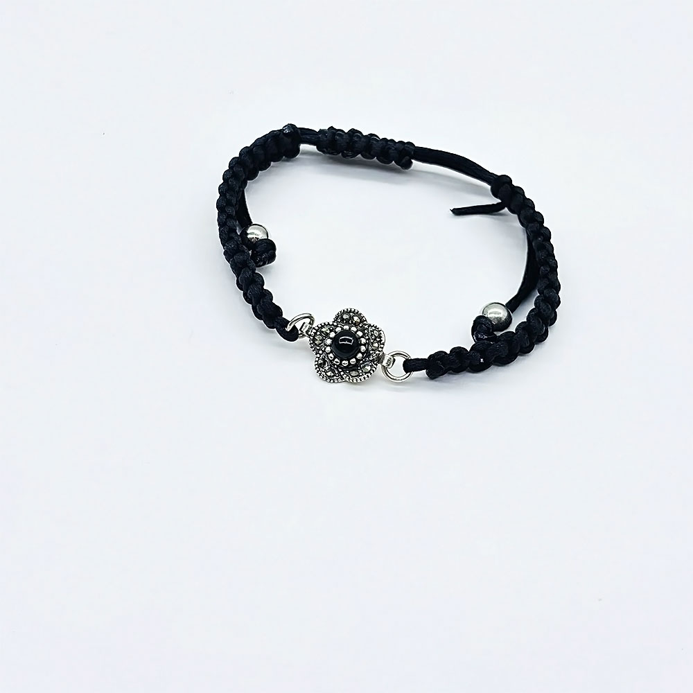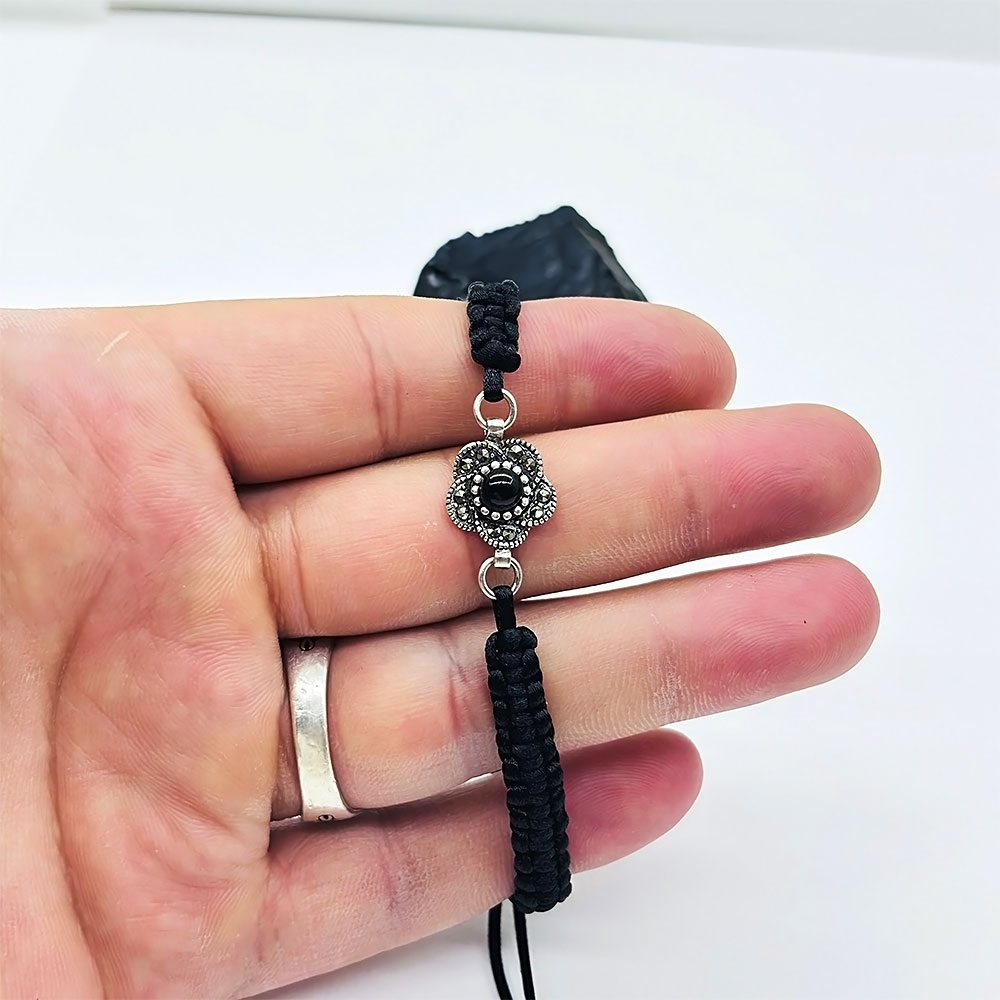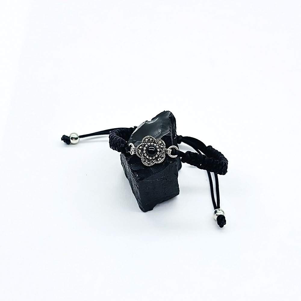 Gül Model Zirkon ve Oltu Taşı İşçilikli 925 Ayar Gümüş Bileklik