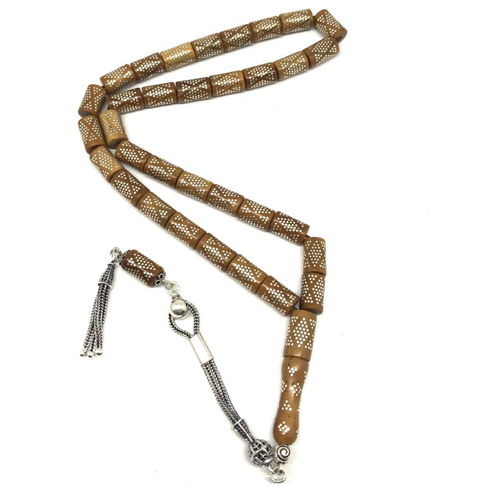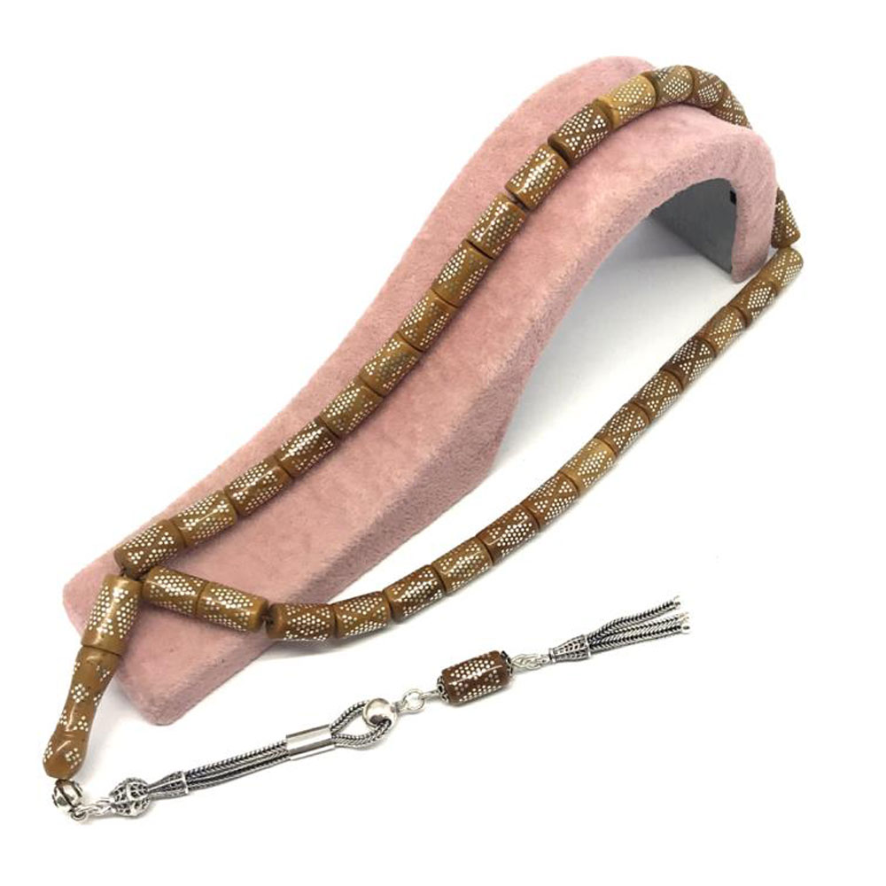 Gümüş İşleme Özel İşçilik Kesme Baklava Desenli Kuka Tespihi