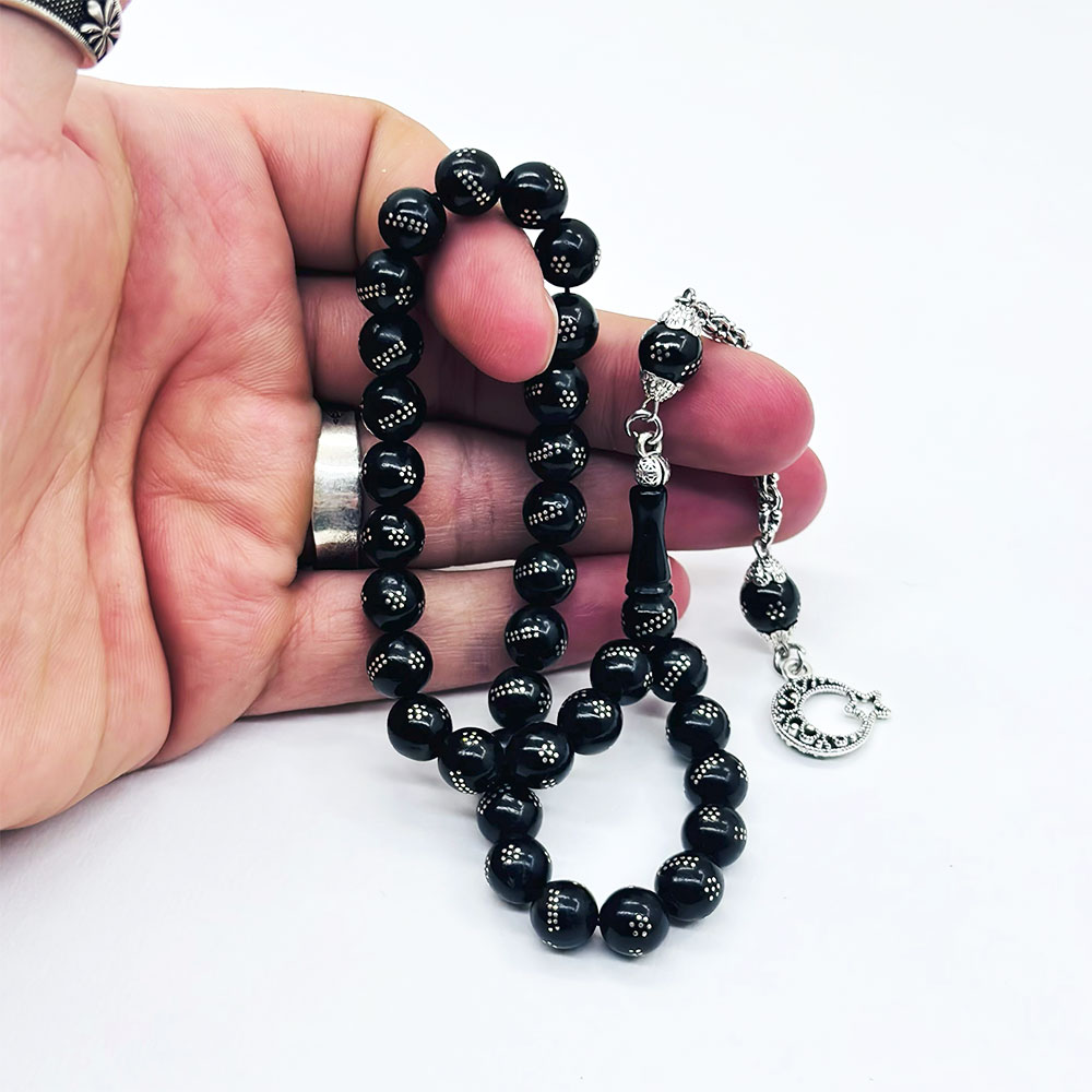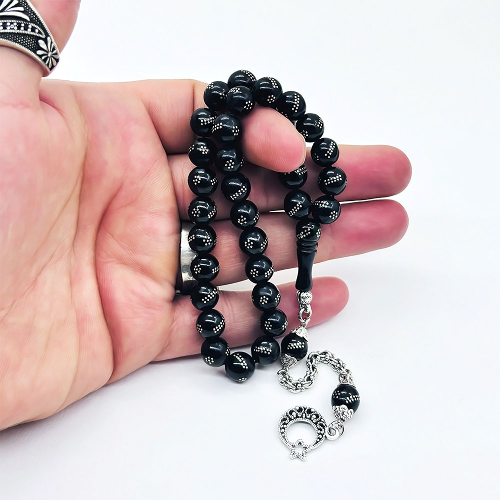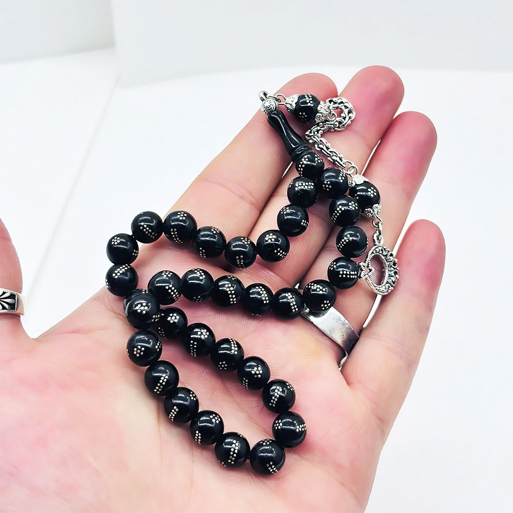 Gümüş İşlemeli Gürcistan Oltu Taşı Tesbih