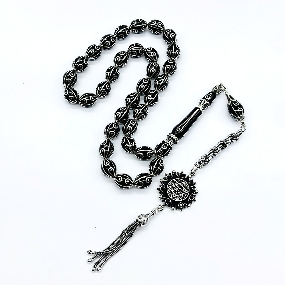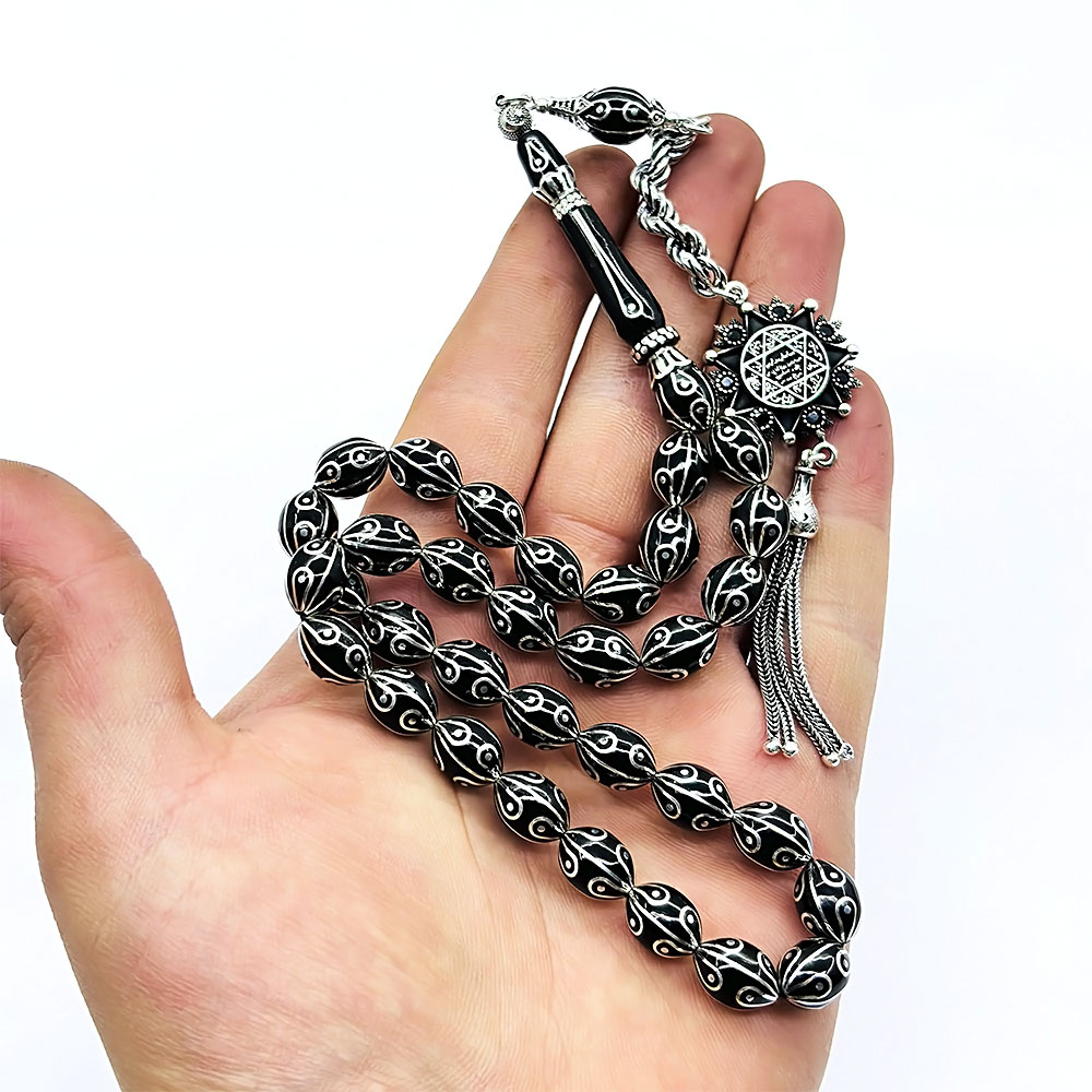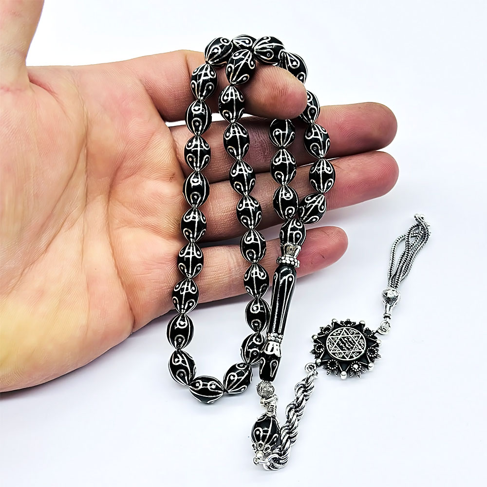 Özel kadife kutusu ve özellikleri belirtilen tesbih |