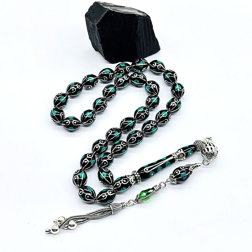 Özel kadife kutusu ve özellikleri belirtilen tesbih |