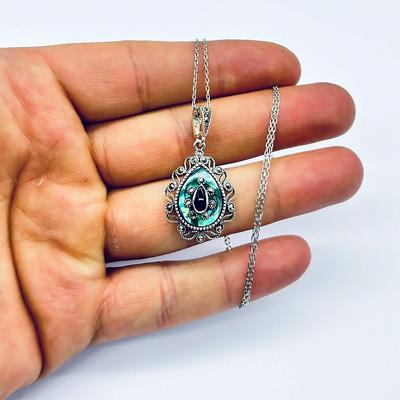 Margazit Oltu Taşı ve Sedef İşçilikli 925 Ayar Gümüş Kolye