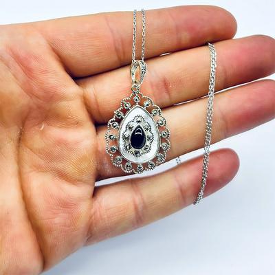 Damla Model Margazit ve Oltu Taşı Tasarım 925 Ayar Gümüş Kolye