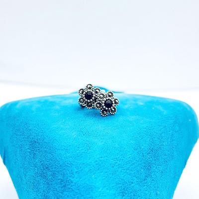 Margazit ve Oltu Taşı İşçilikli 925 Ayar Gümüş Küpe