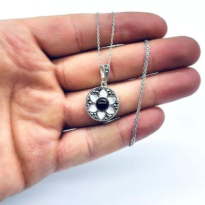 Mini Boy Margazit ve Oltu Taşı İşçilikli 925 Ayar Gümüş Kolye