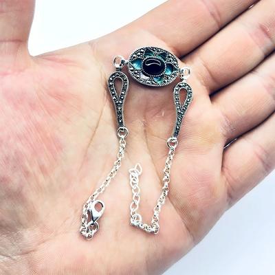 Damla Model Margazit ve Oltu Taşı İşçilikli 925 Ayar Gümüş Bileklik