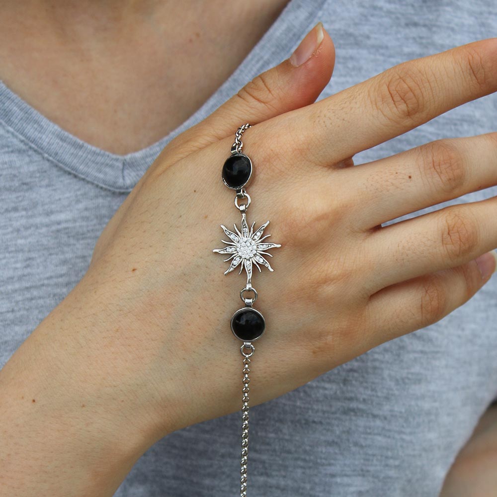 Güneş Modelli Gümüş Ve Orijinal Oltu Taşı Bileklik