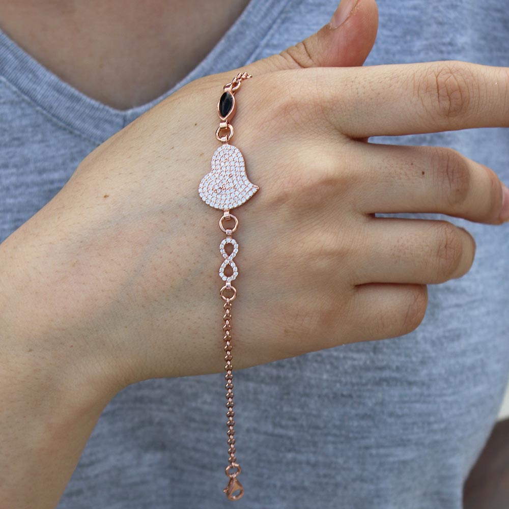Kalp Model Gümüş Ve Orijinal Oltu Taşı Bileklik