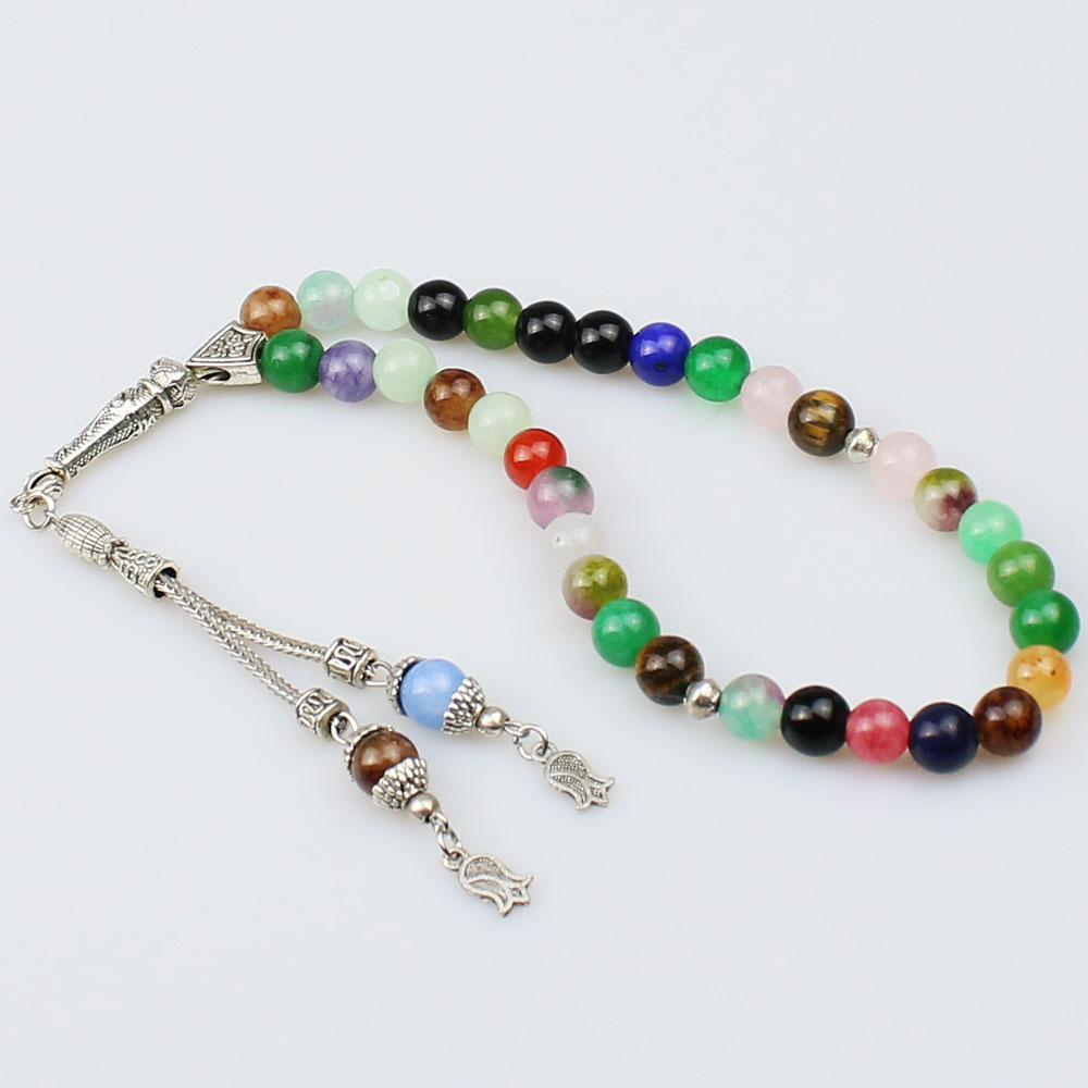 Karışık Renk Ve Özellikte Doğal Taş Tesbih (8 x 8 mm) TP001614