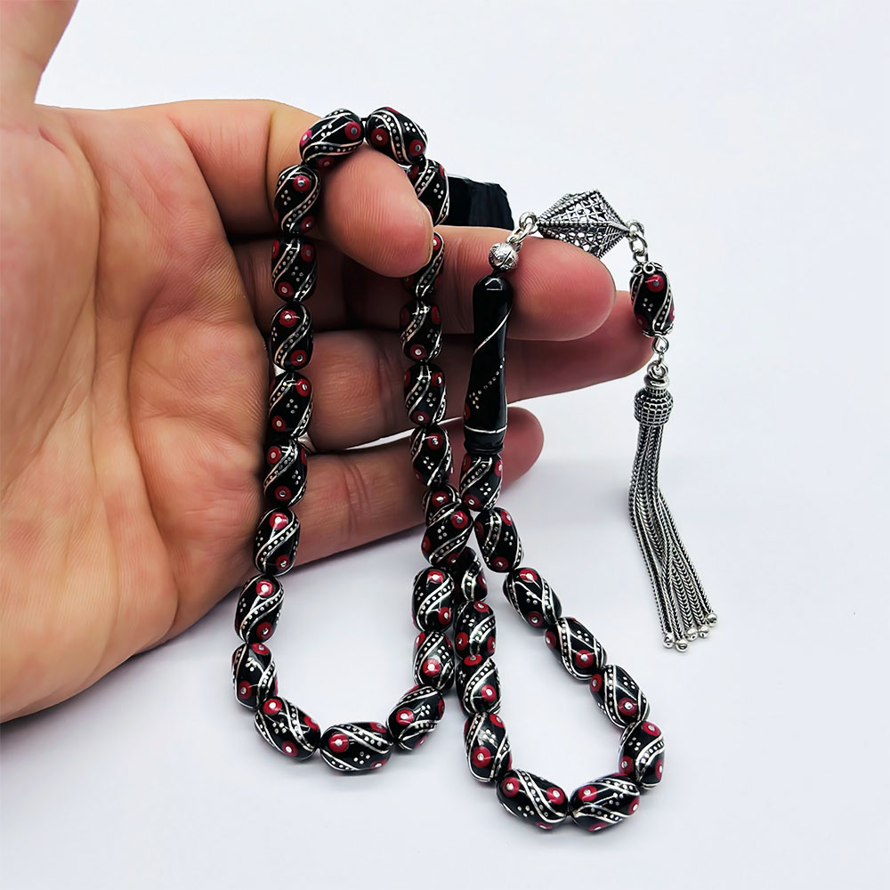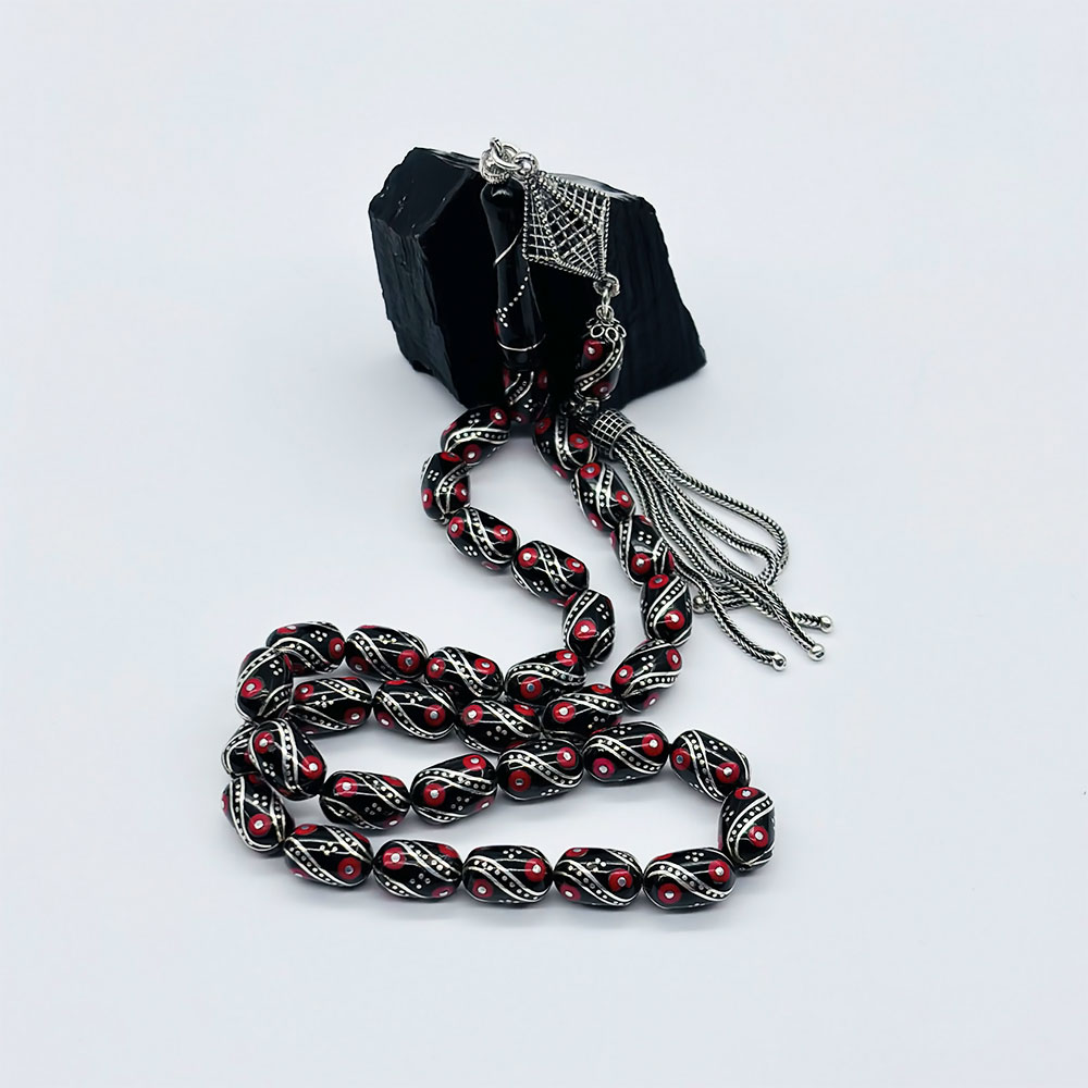 Kırmızı Çeşmi Bülbül İşlemeli Erzurum Oltu Taşı Tesbih