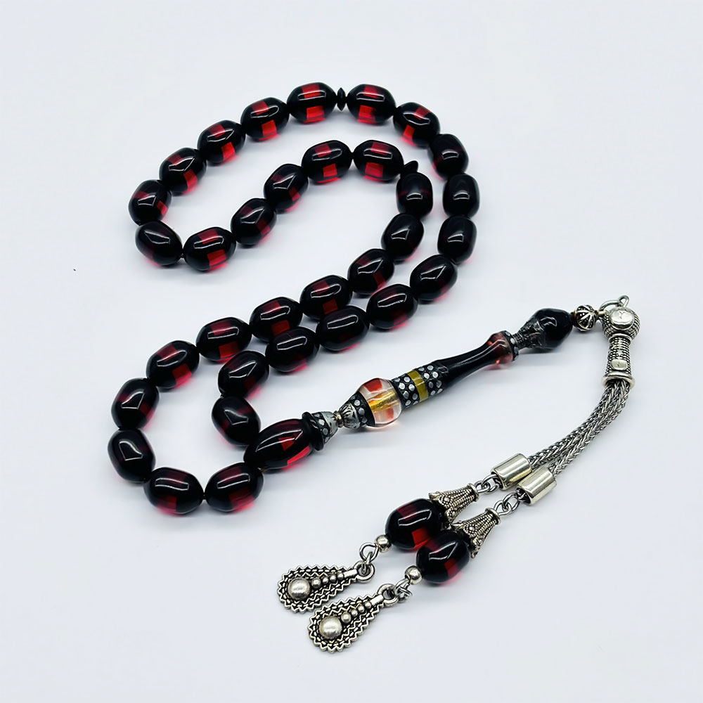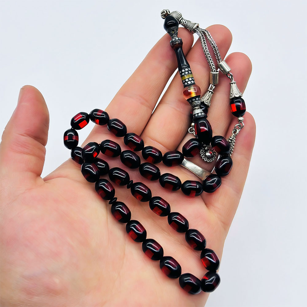 Çift Renk Sürmeli Toz Sıkma Kehribar Tesbih