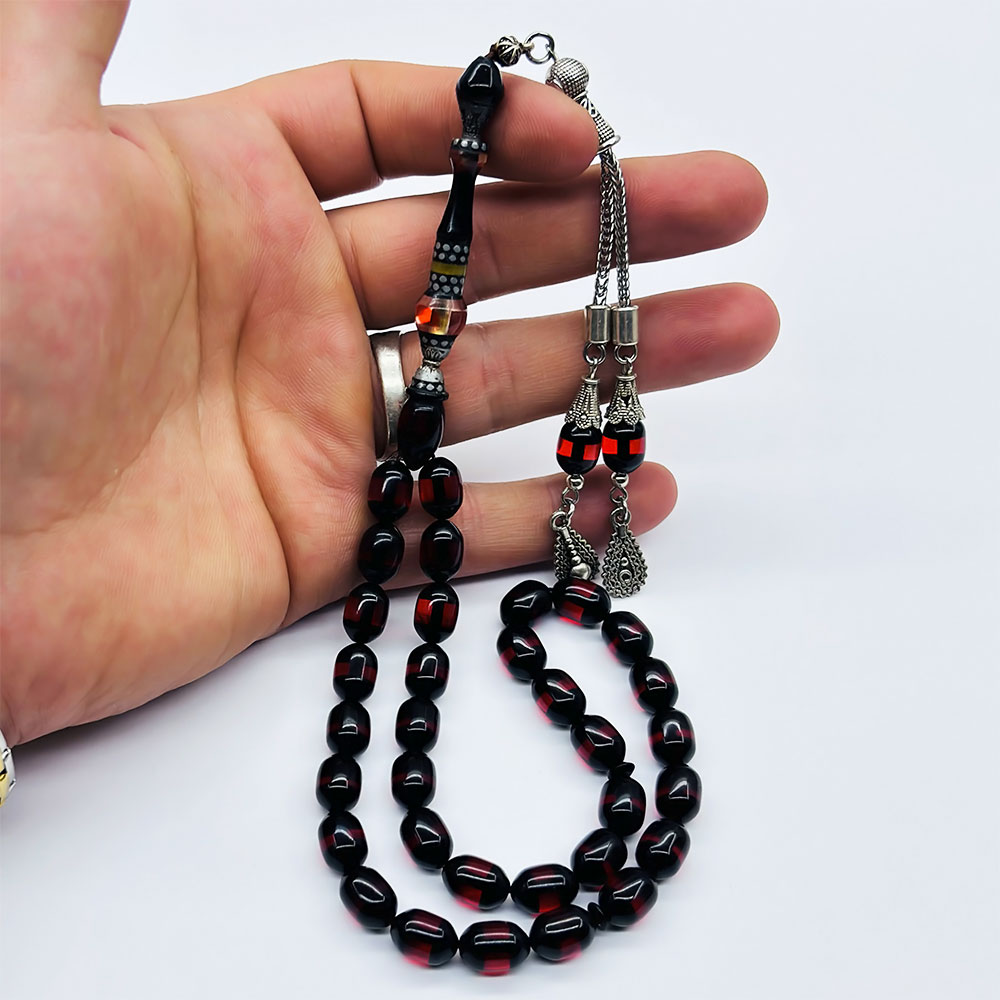 Koyu Kırmızı Sürmeli Kehribar Tesbih