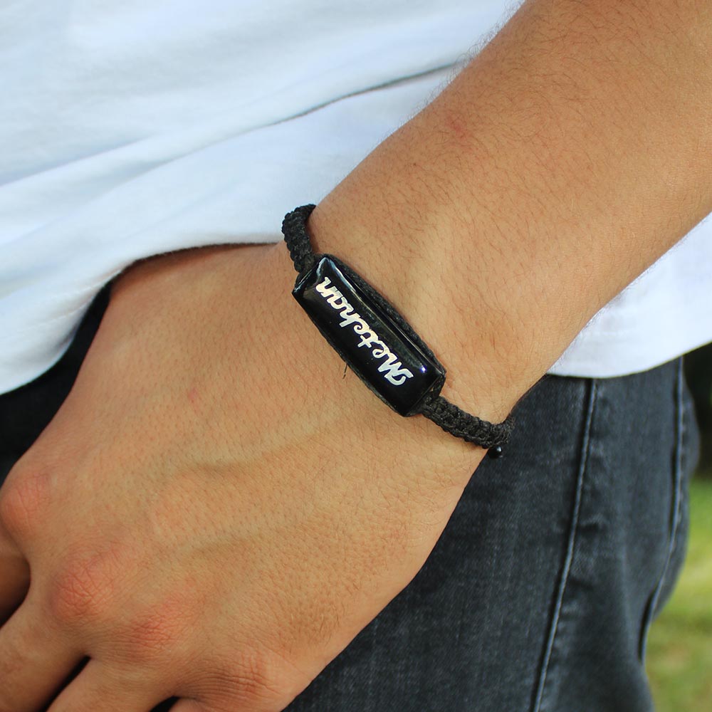 Kişiye Özel Gümüş İsim İşlemeli Orijinal Oltu Taşı Bileklik
