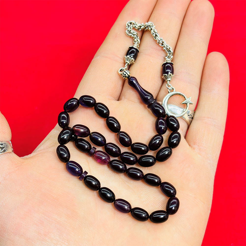 Koyu Renkli Mini Boy Sıkma Ateş Kehribar Tesbih